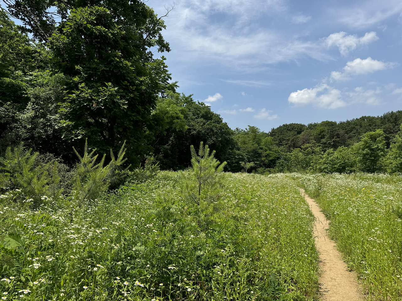 운동화를 신고 문을 열고 계단을 내려가 작은 길을 걷다가 동네를 빠져나와 숲으로 향한다.