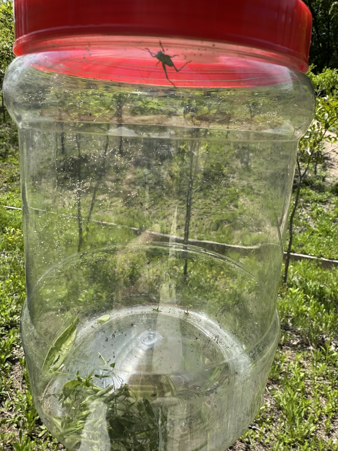 아들이 채집통을 챙겨 왔다. 여치들의 몸을 상하게 하지 않기 위해 주먹을 성기게 쥐어 단번에 잡아 채집통에 넣었다.