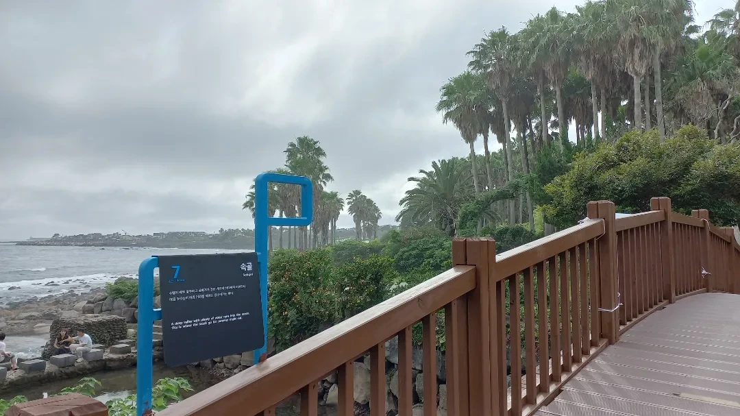 멀리 범섬이 보이는 멋진 풍광에 옆으로는 야자나무가 가득한 수모루 공원까지, 그야말로 제주도의 특징적 풍경을 응축해 놓은 듯한 곳이다.