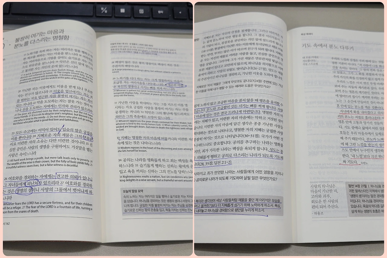 출퇴근길에 스마트폰으로 대충 보고 넘기던 <생명의 삶>을 오랜만에 서점에 들러 책으로 구매했다. 줄을 치며 말씀을 곱씹으니 지나가는 은혜도 내 것이 된다.