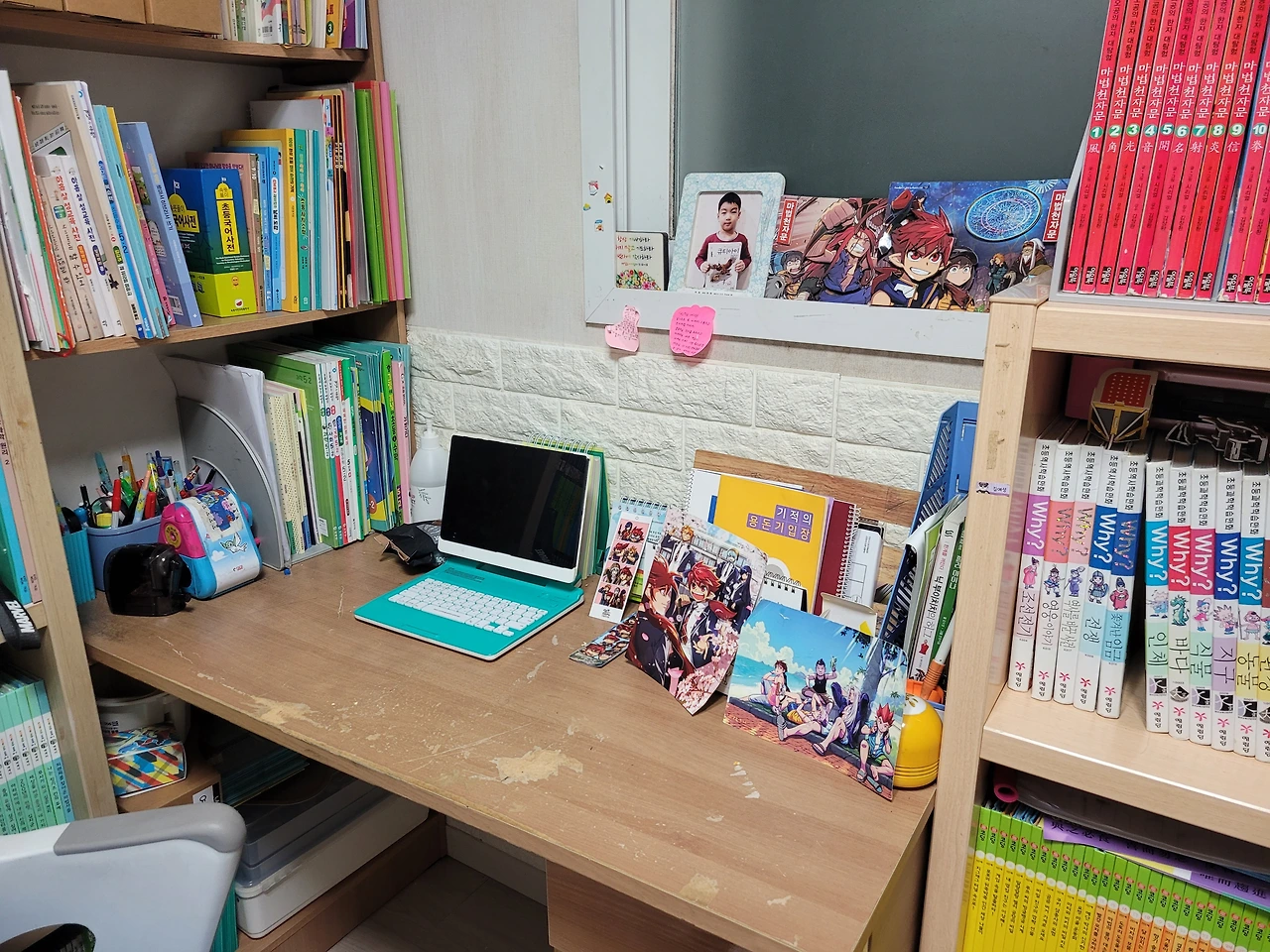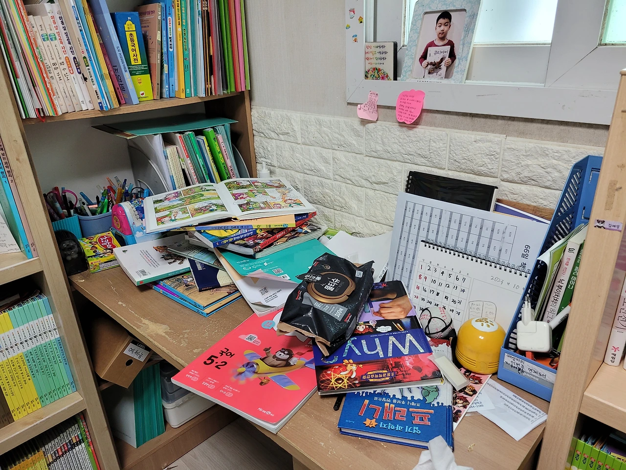 퇴근 후 집에 가서 아이의 책상을 보고 놀라지 않을 수 없었습니다. 오~ 선생님 책상정리 숙제 매일 내주시면 안 되나요? 역시 엄마의 백 마디 말 보다 선생님의 한 마디가 대단함을 느낍니다. 선생님 부디 일주일에 한 번씩 책상정리 숙제 내주세요. 매일도 바라지 않습니다.