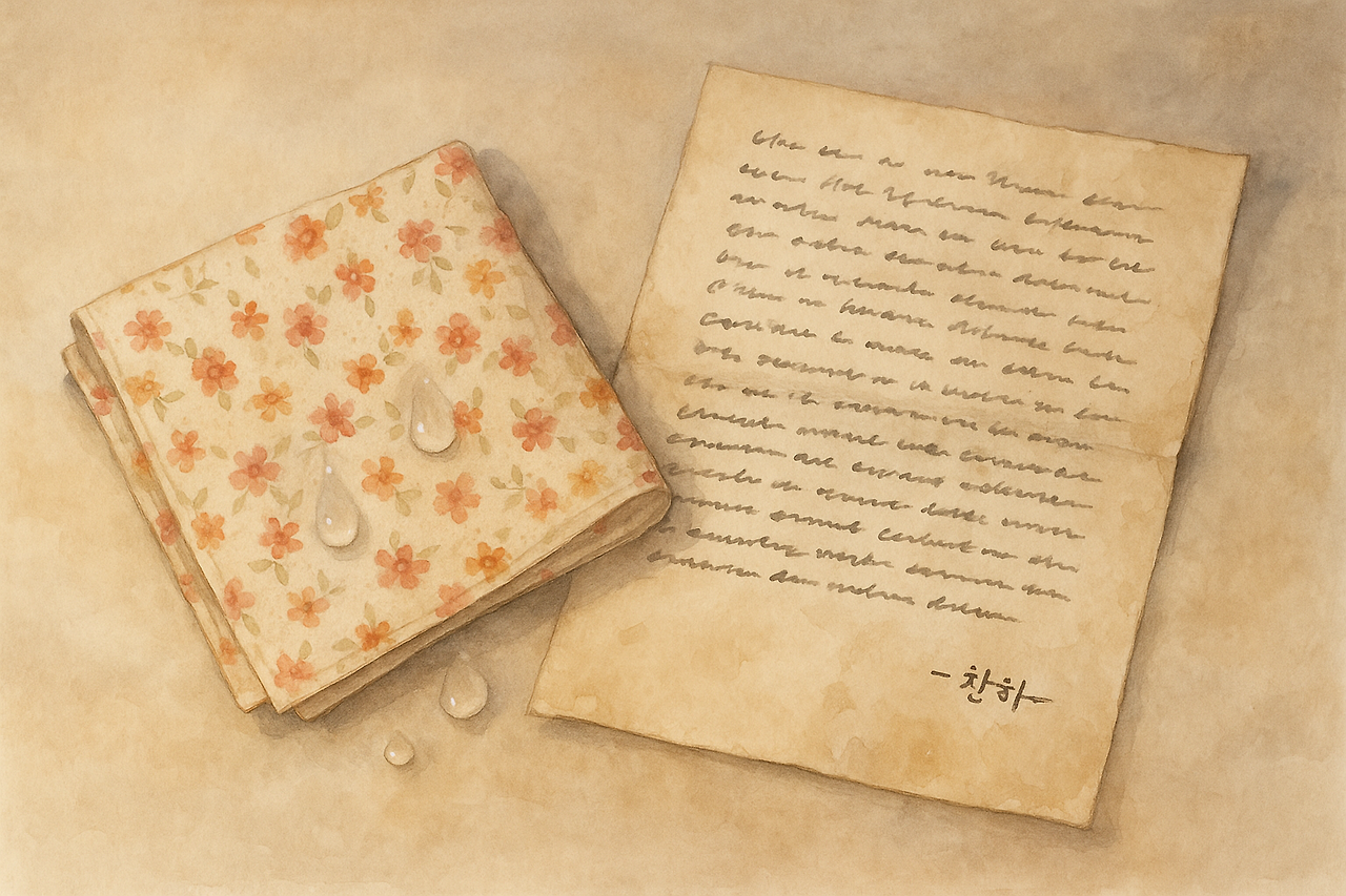 그 눈물이 볼을 타고 내려와 찬하의 편지를 적셨다.