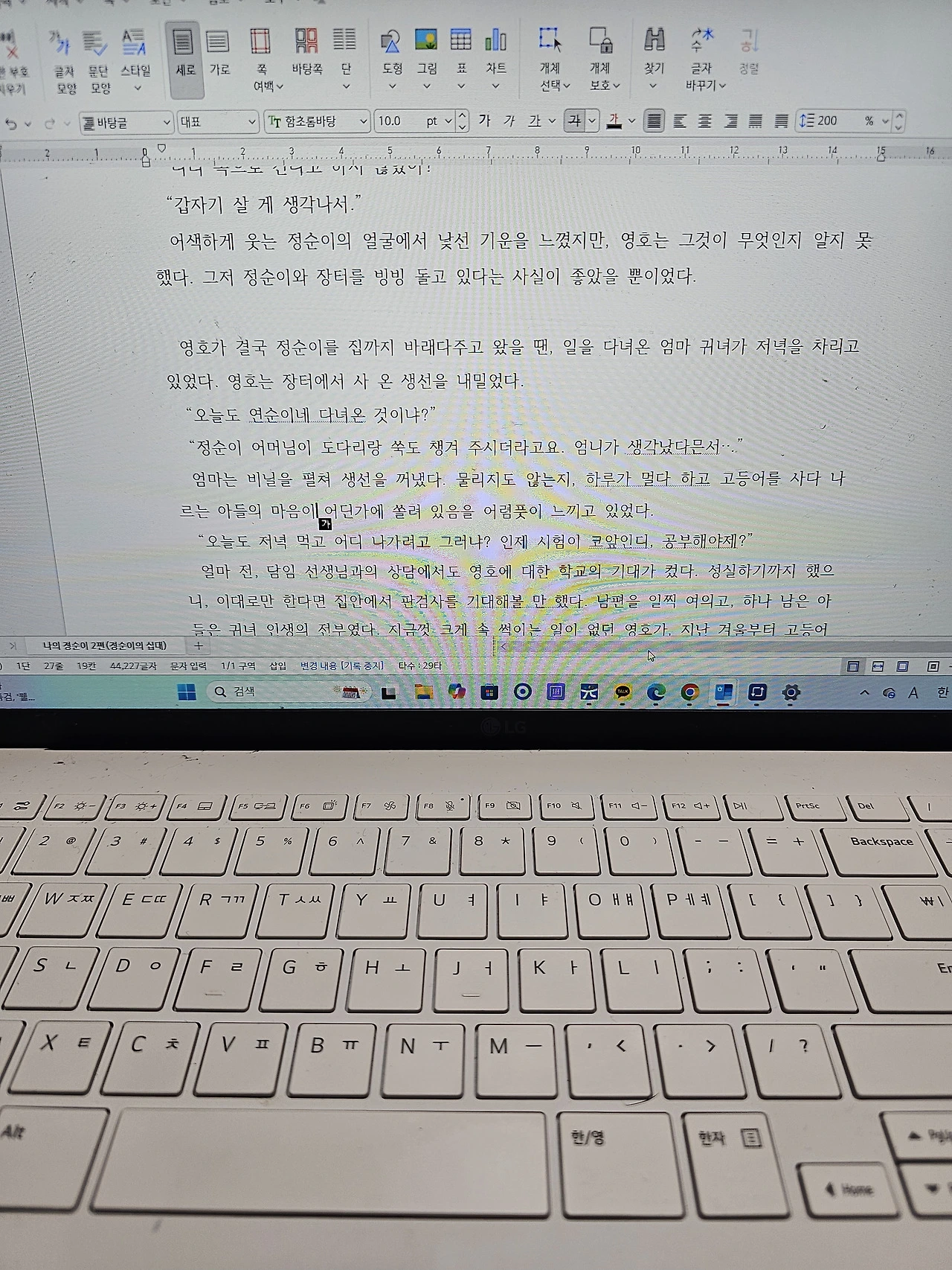 소설을 쓰던 시기에 주말이면 열몇 시간 동안 컴퓨터 앞에 앉아 있었으니