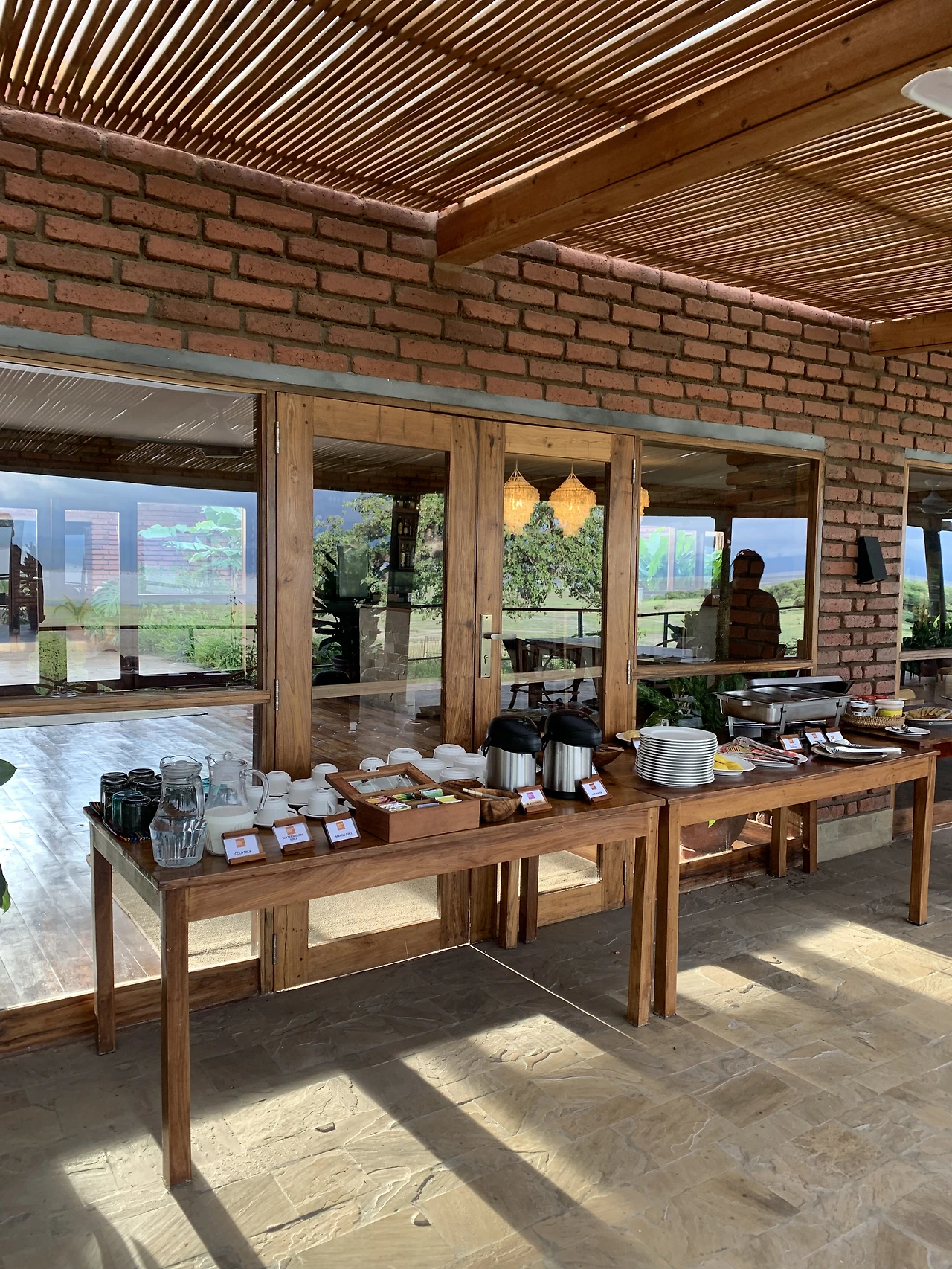 아침 먹으러 가는 길도 예술이다. 해가 질 무렵에 느낀 감정과 아침의 차가운 공기를 마시며 식당으로 올라가는 감정은 또 달랐다. 아침도 뷔페식이었는데 계란요리는 따로 오믈렛이나 프라이로 주문할 수 있었다. 처음에 아프리카에 온다고 했을 때 다름 아닌 우리의 걱정은 '식사'였다. 블로그의 후기들 중 공통적으로 '음식'에 대한 이야기가 나왔기에 한 번도 라면이나 맛다시 같은 제품을 챙길 정도였으니깐. 하지만 어제 석식에 이어 조식을 먹으면서 우리는 생각보다 강한 녀석들임을 깨달았다.
