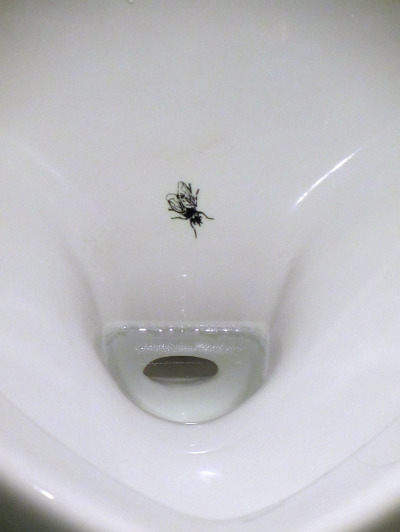 넛지 효과의 대표적인 성공 사례로 꼽히는 것은 암스테르담 스히폴 공항의 화장실 변기입니다. 남자 화장실의 깨끗한 사용을 위해 소변기 중앙에 파리 그림을 그려 놓았더니 변기 밖으로 튀는 소변의 양이 80%나 감소했다고 합니다. 여러분 중에도 고속도로 휴게소 화장실에 가서 비슷한 그림을 본 친구들이 있을걸요?