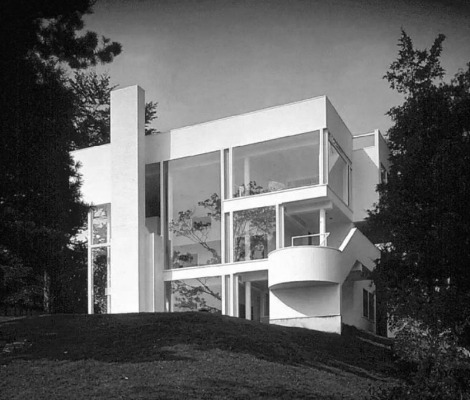 백색의 건축가, 리차드 마이어의 초기 주택. 모더니즘의 정통 후계자로서 그의 솜씨가 유감없이 발휘되었다. 전면에 시원하게 뚫린 통창이 외부를 조망하게 되어 있고, 계단과 굴뚝 등이 디자인 요소로 활용되었다. 기둥을 벽에서 물려 입면을 자유롭게 하는 것은 르 꼬르뷔제의 영향이 느껴지고, 기둥과 창호 프레임을 섬세하게 다룬 것은 미스가 연상된다. 뉴욕 파이브의 일원으로 다음 세대를 이끌 건축가의 등장을 알린 수작이다.