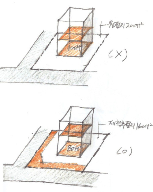 앞서 말씀드린대로 북측 대지와 레벨차가 생기면 그 중간 레벨에서 일조사선이 시작됩니다. 먼저 그 점을 생각하시면 좋을 듯 하구요. 또 하나, 0.5미터 이상 필지의 레벨 변동이 생길 경우 원칙적으로 '개발행위허가'라는 것을 받아야 합니다. 먼저 말씀드린 '지목'의 변경이라던지 절,성토를 0.5미터 이상 하게 되면 이 '개발행위허가'를 동반해야 합니다. 토목설계사무소에서 진행을 하구요. 사실 도심지에서 개발행위허가를 하는 경우는 흔치 않습니다. 외곽의 덜 개발된 곳에서 주로 하게 되구요. 도심지에서 약간의 레벨차 변경은 어느 정도 용인되는 분위기입니다. 원칙은 그렇다는 점 정도를 알아두시면 좋을 것 같습니다.