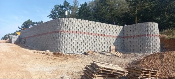 절토가 성토를 하게 되면 필수적으로 옹벽을 설치하게 됩니다. 도심지에서 그럴 일은 많지 않지만, 옹벽이 길어지거나 높아지게 되면 '공작물 설치 신고'를 하게 되어 있습니다. 역시 도심지보다는 외곽 필지에서 주로 하게 되구요. 옹벽은 콘크리트로 하느냐, 보강토 또는 석축으로 하느냐를 선택하게 됩니다. 석축 같은 경우 건축물과의의 이격거리를 특정하는 법규가 있기 때문에 규제가 좀 까다롭습니다. 실제로 위험하기도 하구요. 현장에서는 거의 다 보강토 옹벽이라는 것을 설치합니다. 규격화된 콘크리트 블럭을 쌓아나가는 방식이구요. 저희가 보는 대부분의 옹벽이 이 보강토로 되어 있습니다. 석축과는 달리 별도의 규제는 없습니다만, 역시 안전이 중요하기 때문에 어느 정도의 이격거리는 확보하는 것을 권장합니다. 그리고 5미터 높이 이상의 보강토 옹벽은 위험하여 별도의 규제를 받습니다. 그래서 많은 곳에서 5미터 단위로 끊어서 시공하곤 합니다.