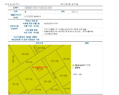이 토지이용계획확인원은 모든 법규체크의 근간이 되기 때문에 반드시 확인하셔야 하는 서류입니다. 이 서류에 필지의 법적 경계선, 지역지구, 제한 사항, 면적 등이 모두 적혀있습니다.