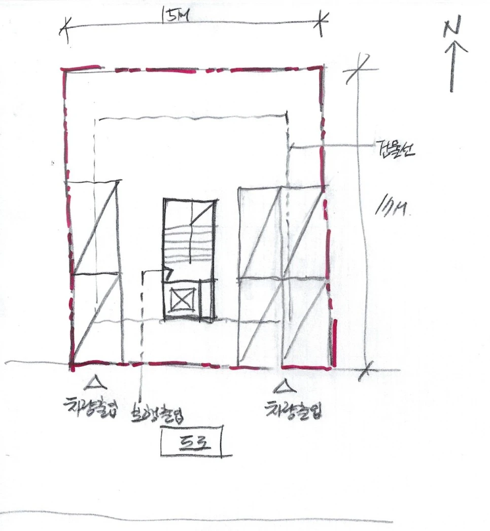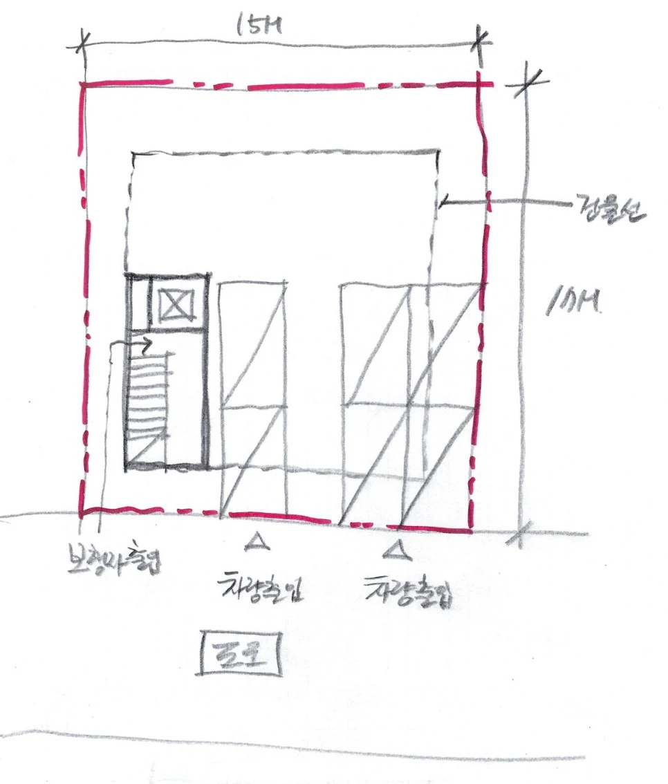 이 글과 관련해서 제가 진행했던 개포동 상가주택의 주차장, 코어 위치 검토와 관련된 포스팅을 같이 읽어보시면 도움이 되실 듯 합니다.