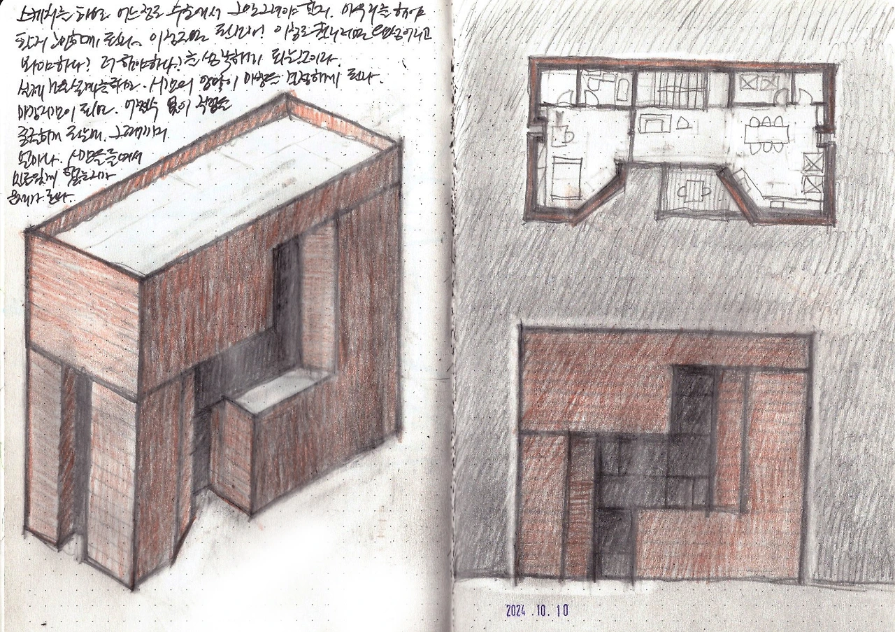 실제 설계에서는 마감 시간이 완성을 결정하게 된다. 마음에 차지 않아도 마감 시간이 되면 강제로 완성시켜야 하는 것이다. 건축설계는 예술작품과 많은 부분에서 다르지만 이 점 역시 결정적으로 다른 부분이다. 그러기에 주어진 시간을 최대한 활용해서 완성도를 끌어올려야 한다. 하기 싫다거나 영감이 오지 않는다는 이유로 마냥 미룰 수가 없다. 마감 시간을 잘 맞추는 것도 실력이고 그 사람의 능력이다.