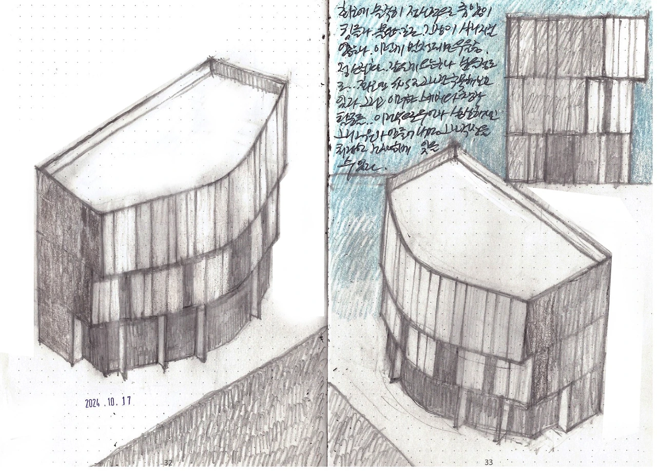 사실 나도 이 스케치를 한다고 해서 바로 실력이 는다거나 하는 게 보이진 않는다. 하지만 몇 년을 하다보니 그 전보다는 뭔가 감각이 조금은 생겼다는 느낌이 들긴 한다. 오늘도 한 장 남겼으니 어제보단 나아졌으리라 믿는다. 책을 읽거나, 운동을 하거나, 글을 쓰거나.... 기타 다른 것들도 마찬가지다. 지치지 않고, 포기하지 않고 하다보면 몇 년이 지나 조금이라도 나아졌다고 느끼는 날이 오리라 믿는다.