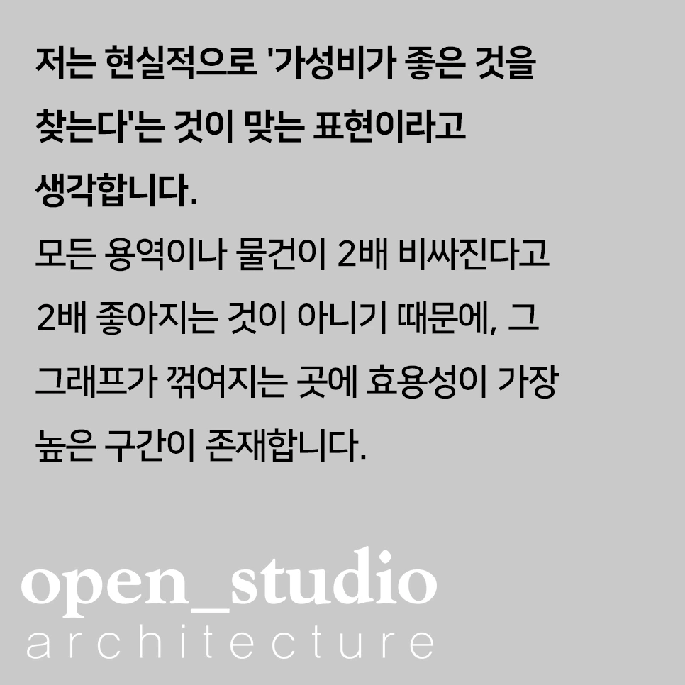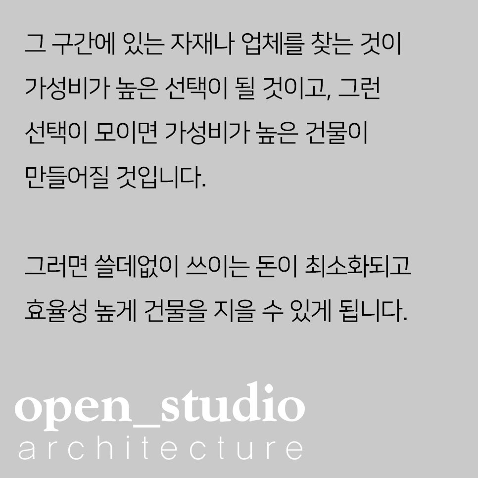 그 구간에 있는 자재나 업체를 찾는 것이 가성비가 높은 선택이 될 것이고, 그런 선택이 모이면 가성비가 높은 건물이