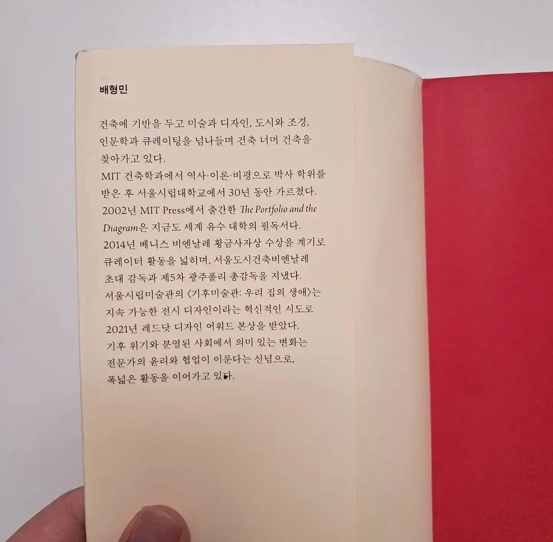 배형민 교수님은 우리나라를 대표하는 건축 비평가라고 할 수 있다. 서율시립대학교 교수로 활동하시면서 베니스 비엔날레 등 다양한 전시 큐레이팅을 진행하신 것으로 유명하다. 과거 건축학도의 필독서로 불리웠던 '포트폴리오와 다이어그램'이 복간되면서 화제가 되기도 했다. 배형민 교수님이 최근에 출간하신 '건축 너머 비평 너머'라는 책이 있다고 하여 구입하여 읽어보았다.