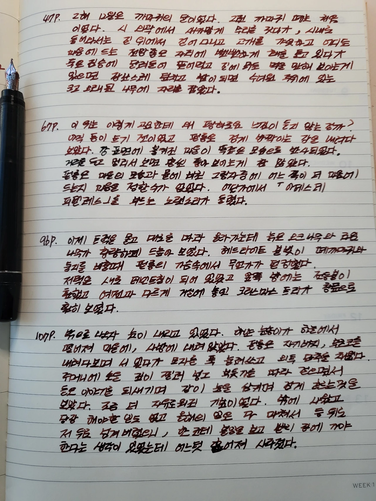 요즘은 글씨를 쓰지 못해도 모든 걸 컴퓨터로 하니 악필가들의 고민은 사라진 듯했다. 그러니 만년필이니 뭐니 하는 게 요즘 사람들의 흥미를 별로 끌지 못할 것이다. 내가 아마 그 당시 만년필을 잘 활용했더라면 인생을 조금 더 편하게 살았을지도 모른다. 글씨 못쓴다고 계장한테 혼나는 일로 없었을 것이고 그때부터 필사를 시작했더라면 놀라운 발전이 있었을 것이다.