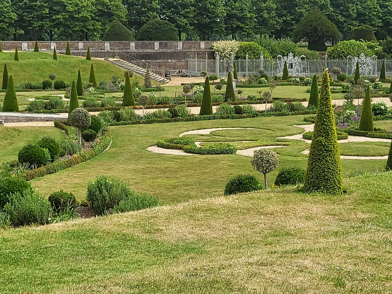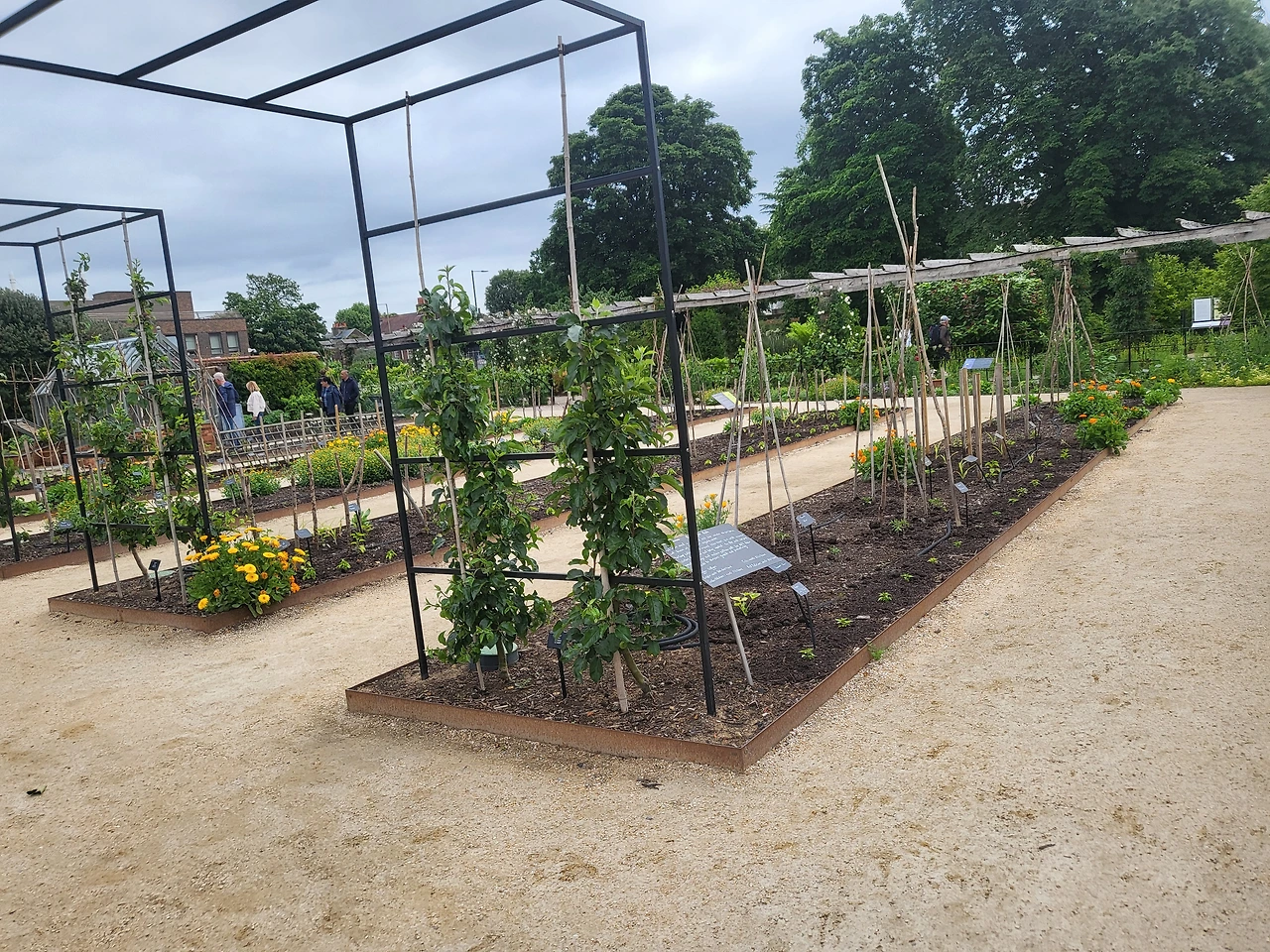 다섯 번째 날은 햄프턴 코트 궁전을 가는 날이다. 드디어 가이드가 우리 호텔로 왔다. 헨리 8세가 지은 900년 된 궁으로 바로크양식의 정원을 비롯해 100년 이상된 포도나무 등 군데군데 정원이 넓게 펼쳐지고 있었다. 그 당시 사용하던 부엌과 침실 회의실등을 둘러보았는데 실제 목 없는 앤불린 귀신이 돌아다닌 다는 말이 나올 정도로 오랜 역사의 음습한 분위기가 느껴졌다. 정원 전체는 말을 타고 이곳저곳을 돌아다닐 수 있을 만큼 어마어마한 크기였다. 실제 만원 정도에 그곳 가까운 마차 투어를 할 수 있는 곳도 있었다. 세계최초의 가장 오래된 테니스코트장도 있었고 넑은 잔디광장에는 가족단위 축제도 열리고 있었지만 우리나라처럼 어마어마하거나 요란하거나 그런 축제는 아니었다. 오후엔 2시간을 소형버스를 이용해 위슬리 가든을 방문했다. 그곳 역시 큐가든만큼이나 다양한 정원공간이 있었고 식물을 배양하고 연구하는 연구소를 비롯해 왕립원예협회의 사무실이 있는 곳이다.