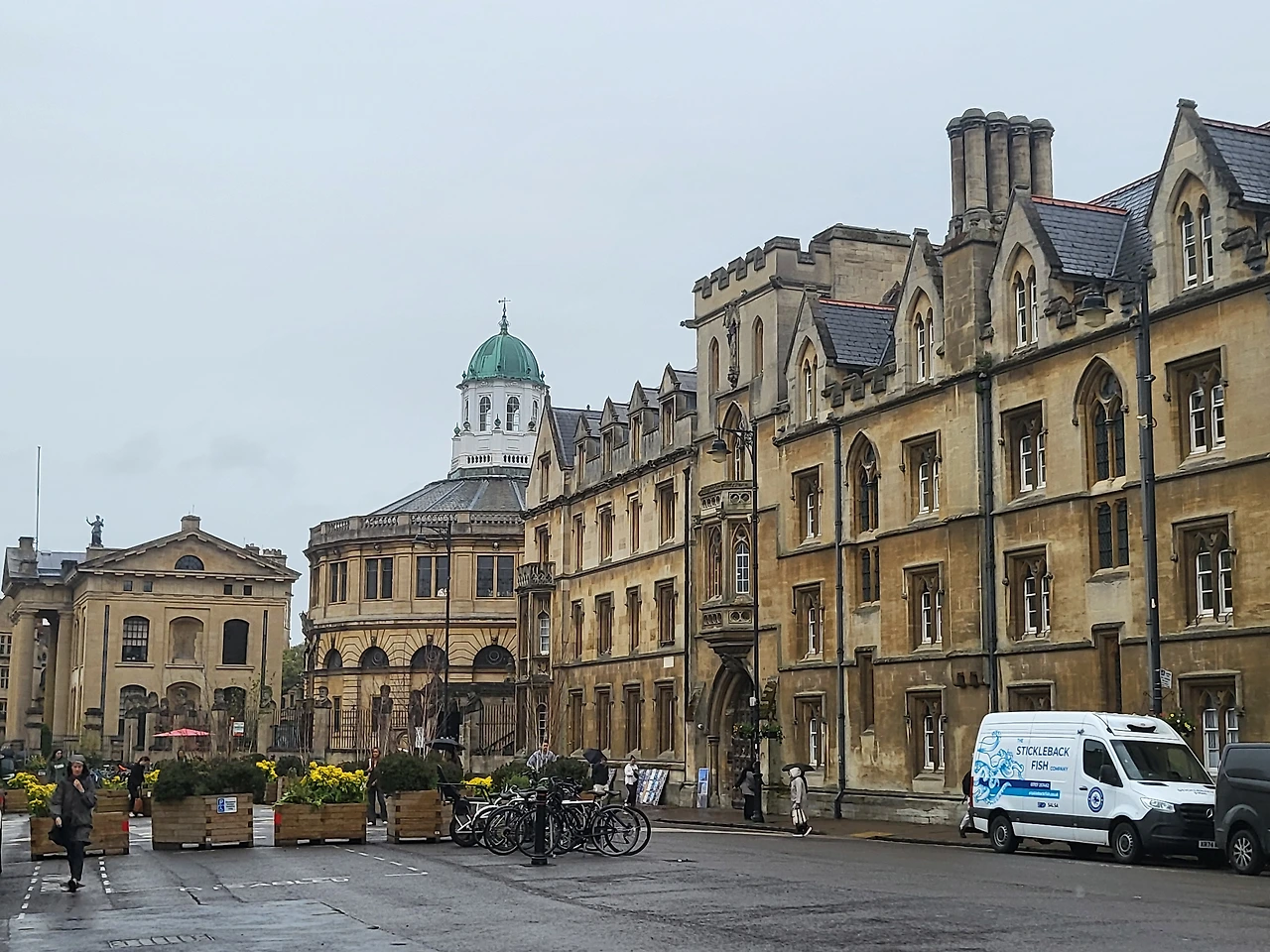 마지막날은 오전에 많은 칼리지들이 모여있는 옥스퍼드로 갔다. 그날은 마지막날이고 오후엔 공항으로 출발해야 하는데 오전에 비가 내리고 있었다. 런더너처럼 그냥 등산바지에 등산재킷의 모자를 고집했다. 하지만 비가 점차 세지자 방수 등산복도 효력을 상실하려고 했다. 이날은 제대로 된 만찬을 먹어봤으면 했다. 피시밑에 깔려있는 시금치와 소스 위에 암석처럼 동그라니 놓여있는 피시(대구) 위에 레몬 한 덩이는 암석이라는 주제의 그림 같기도 했다. 1인 피시 앤 칩스를 시켰으면 좋았을까 거의 소스까지 다 먹을 정도로 거의 깨끗한 접시가 되었다. 일행들이 기념품가게 들른 사이 자연스럽게 혼자가 되자 이번엔 맛있는 플랫화이트를 먹어보겠다고 주문했지만 역시나 쓴맛만 가득한 비싼 7천 원 넘은 커피였을 뿐이었다.