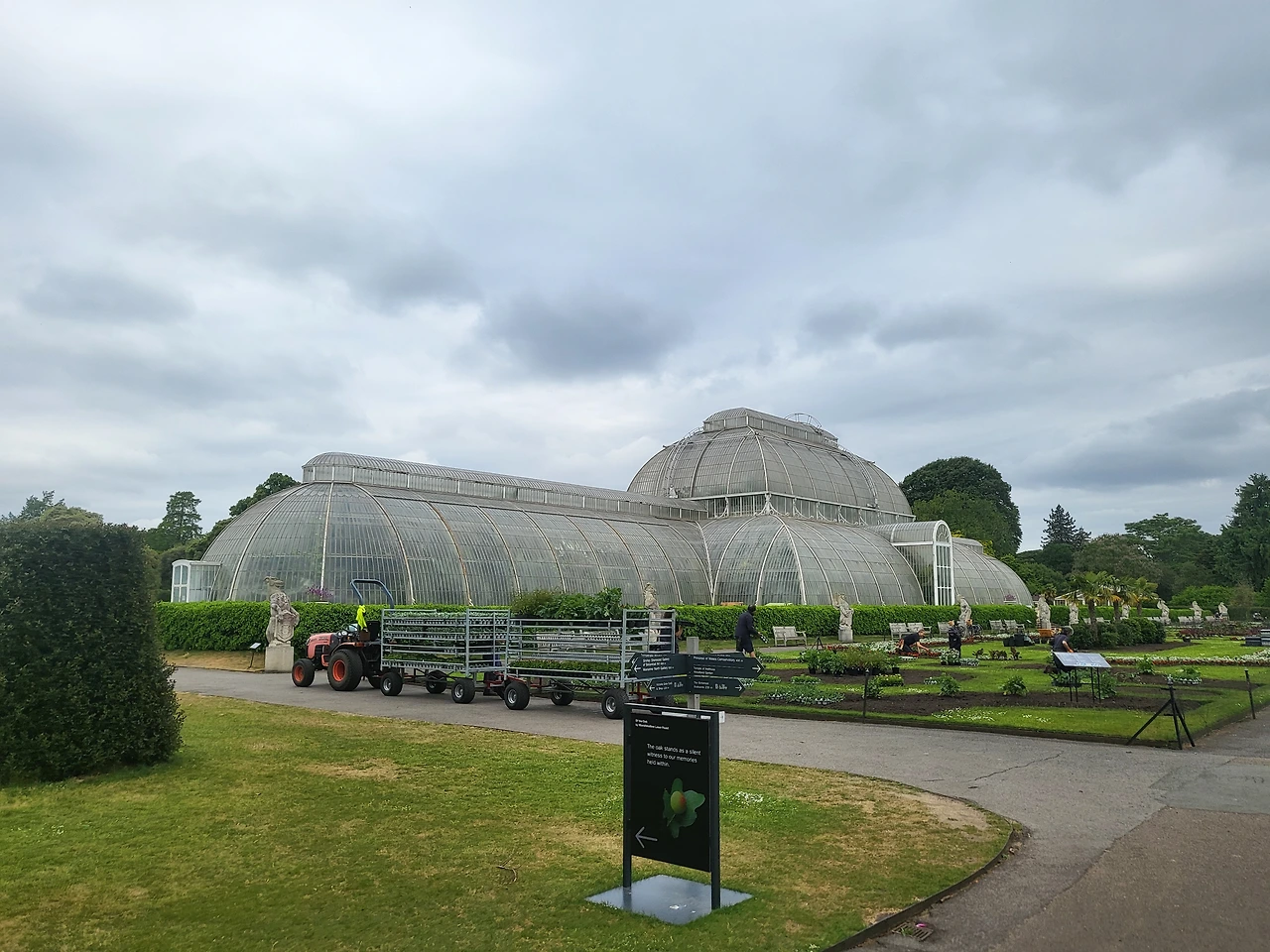 두 번째 날은 큐가든이었는데 왕립식물원이라 기대했던 것보다 어마어마한 크기의 정원이었다. 한국에서 미리 예매를 했는데 평일이라 아침은 그리 붐비지 않았다. 버스를 잘못 타서 두 번 타고 간 영국의 큐가든에서는 가장 인상 깊었던 건 글라스하우스 뒤 거대한 오크나무길이었다. 가운데는 명상음악과 오크나무 영상을 보여주는 대형 스크린이 있었다. 그 앞의 작은 벤치에 방문자들은 앉아서 그 고요하고 길고 넓은 공간에서 오크나무와 마치 대화를 하고 있는 것 같았다. 다시 런던을 가게 된다면 큐가든은 다시 한번 방문해 보고 싶다. 여유 있는 주말 아침 신선한 공기를 마시고 거대한 정원을 거니는 것도 엄청난 힐링이 될듯했다. 아쉬운 건 오랑주리 카페에서 애프터눈티를 마셔보지 못했다. 답사를 위해 땀 뻘뻘거리고 돌아다니는 동안 다른 멤버들이 차분하게 그곳에서 오후의 차를 즐기는 모습을 보게 되었다. 여유롭게 정원을 즐긴 그들이 현명한듯 하다.