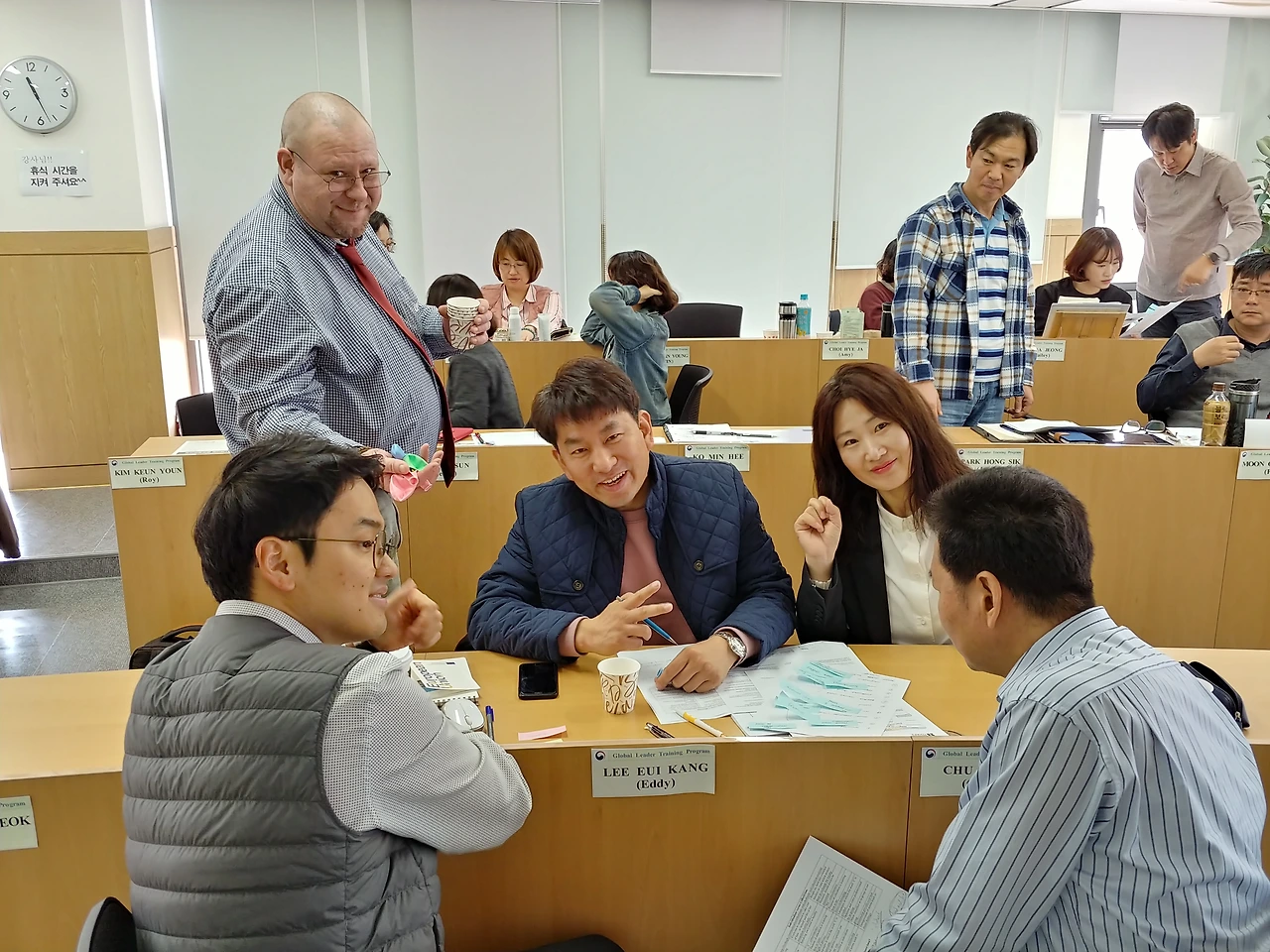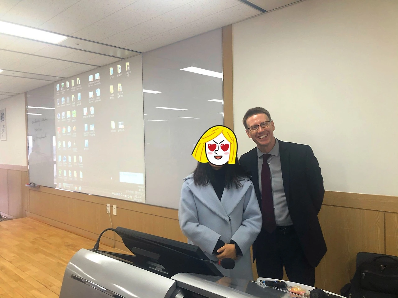 호주 출신의 줄리아는 한국 온 지 10년이 넘은지라 한국말도 능숙한데다 한국에서 막걸리 회사까지 차렸다. 한국에 와 막걸리 맛에 푹 빠져서 한국 토종 술 판매 회사를 차렸는데 한국 사람보다 더 막걸리에 대해 잘 알고 있다. 수업 내내 목을 아끼지 않는 그녀의 열정에 푹 빠져서 그녀와 함께하는 수업시간은 시간 가는 줄 몰랐다. 영국문화원의 캐나다인 브라이언은 스쿠버다이빙을 즐긴다고 했다. 그가 한국에 오기 전엔 말레이시아에서 생활하며 영어를 가르쳤다고 하는데 스쿠버다이빙이라는 취미에 푹 빠져 긴 휴가기간에는 그것만 즐기는 듯했다. 캐나다인 나탈리는 프레젠테이션 발표하는 관련 수업인데 우리가 어떻게 자신의 의사를 자신 있게 표현하는 무대기술 등을 가르쳤다. 앞 강단을 위풍당당 누비는 나탈리의 등장은 확실히 카리스마가 넘쳤다. 댄튼 외에 댄튼과 친한 언제나 나비넥타이를 맨 노신사인 미국인 더글라스의 역시 열정과 카리스마가 넘쳤다. 항상 노란색 아니면 빨간색 나비넥타이를 맨 더글라스의 웃음은 정말 한국의 중년 아저씨 너털웃음 같았다. 외국인의 웃음소리를 들은 건 처음이 아닐까 생각했다.