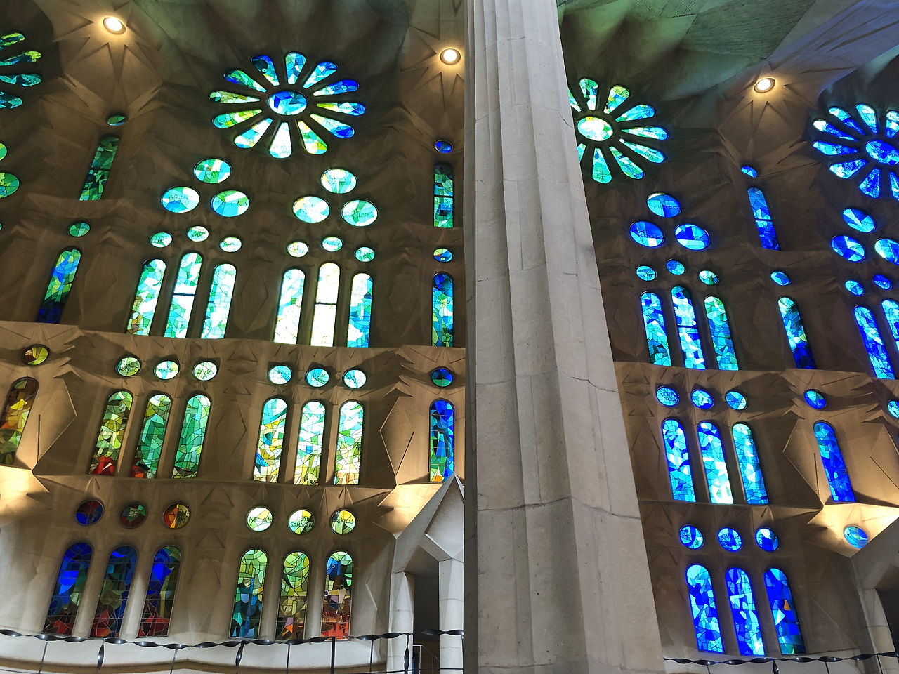 스페인의 세계적인 건축가 가우디가 건축한 성가족 성당은 옥수수를 세워 놓은 듯한 형상인데 그 높이 또한 웅장해서 밑에서 쳐다보면 꼭대기까지 다 볼 수 없고 내부 또한 화려한 스테인글라스로 장식되어 곳곳에 가우디의 천재성이 가미된 성스러움을 보여주었다.