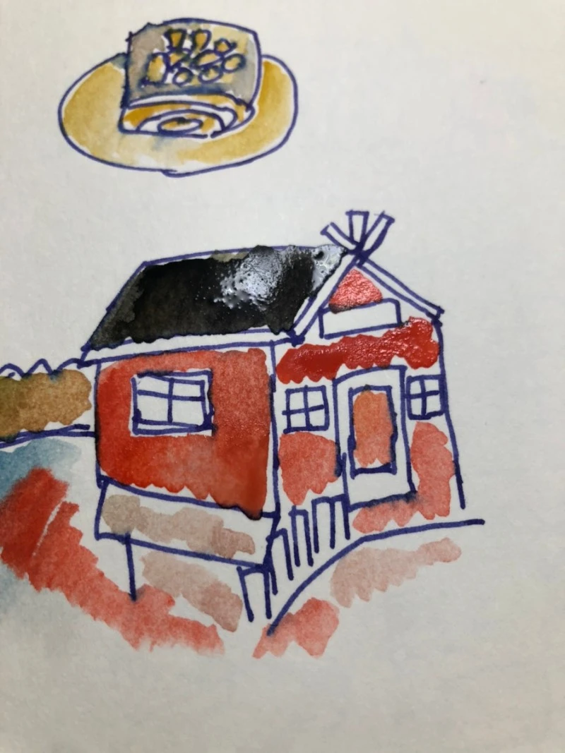 바로 길을 건더면 100년 되었다는 아주 작은 검붉은색의 카페가 있다. 그곳에서 유명한 건 시나몬 롤이라는데 안 먹어 볼 수 없다. 미니풍차가 강 위에 떠있는 듯한 그곳은 사진 찍기에 더할 나위 없었다. 인상적인 건 입구 벤치에 참새들이 모여있었는데 세상에나 그렇게 통통 살이 오른 참새는 처음이었다.
