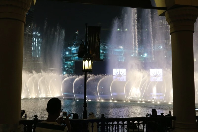 어떻게 쇼가 끝나자 기사가 우리와 인도인 가족을 계속 주시하고 있었는지 우리 쪽으로 나타났다. 나 역시 인도인 가족과 떨어지지 않으려고 그들의 행방을 쫓기 급급했다. 그렇게 저녁 10시가 다 되어 다시 두바이몰로 도착해서 분수쇼를 보기 위해 근처 식당으로 갔으나 식당에 그 어떤 자리에 앉아도 시원하지 않고 밤이 되어도 더위로 인해 숨을 쉴 수가 없었지만 참고 분수쇼를 볼 수밖에 없었다. 확실히 음악과 함께 한 분수쇼는 기억에 남을 만큼 멋진 쇼였다. 여행이란 좋은 것이 그때도 그렇게 이렇게 돌아와서도 오랜 시간 동안 기억 속에 남아 흐뭇하게 그때를 추억할 수 있게 하기 때문이다.