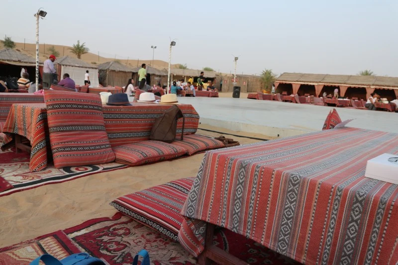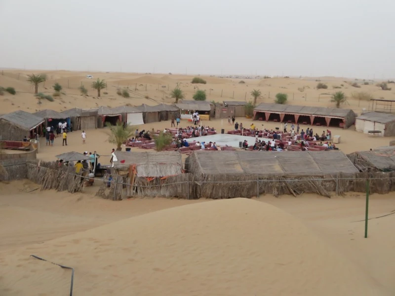 사막투어는 4륜 구동차를 타고 모래사막을 질주하는데 모래언덕 위를 올라갔다 내려갔다 하며 관광객들에게 극한의 쓰릴을 안겨준다. 옵션으로 낙타를 탈 수도 있고 물담배도 피울 수 있고, 그곳에서 나눠주는 전통음식을 먹고 불쇼와 춤을 밤새도록 구경하는 것이다.
