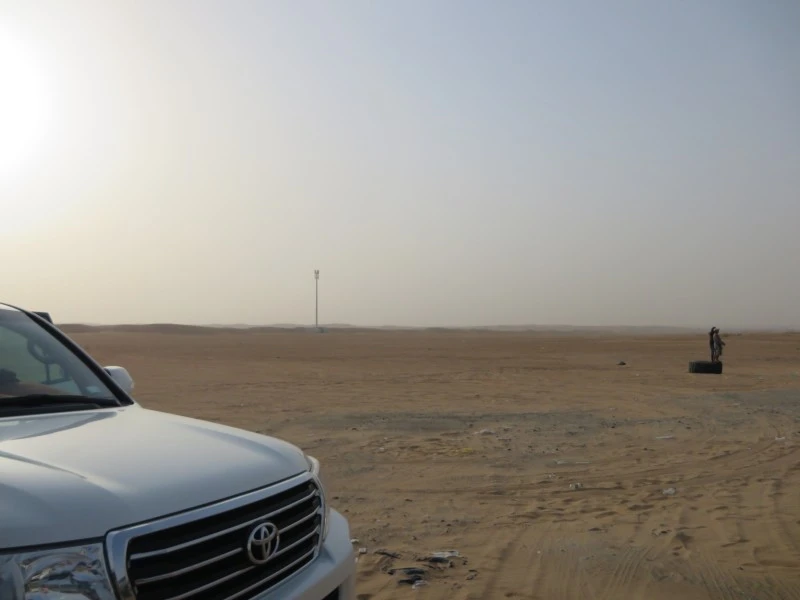 가도 가도 끝이 없는 길을 장시간 가다 보니 해는 떨어지기 시작했다. 진짜 우리가 가는 게 맞는 건가 사막에 버려지는 건가, 이러다 납치되는 건 아닌가 별별 생각이 다 들었다. 시간을 되돌릴 수 있다면 사막투어고 뭐고 그냥 호텔 가서 쉬고 싶은 생각뿐이었다. 결국 시간이 흘러 도착하게 되었고 많은 사륜구동 차들이 주차해 있었다.