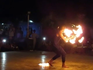 모래 위 깔린 테이블에 앉아서 물담배를 피우는 여행자도 있었고 다들 빈 테이블을 찾아 자리를 잡기 시작했다. 어둠이 내려앉은 사막에 불쇼는 그곳의 열기를 더욱 후끈후끈하게 달궜다. 불쇼가 끝나자 배꼽을 드러낸 의상을 입은 여성들이 나와 벨리댄스를 추기 시작했다.
