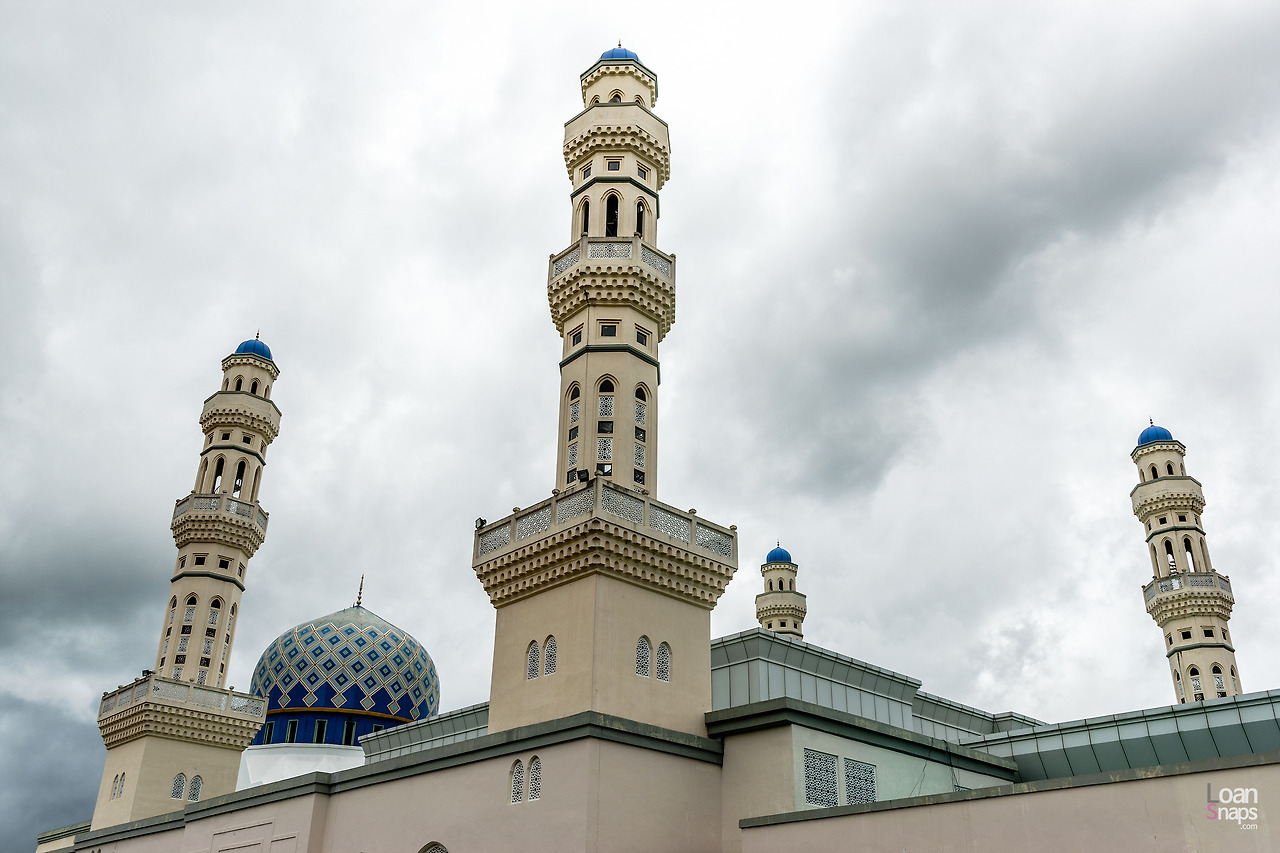 굉장히 아름다운 모습을 갖고 있다. 특히 탑 끝의 파란색 기둥은 시선을 한방에 사로잡기에 충분 이상이다. 코타키나발루에는 여러 개의 모스크가 있는데, 황금색, 분홍색, 파란색, 빨간색 등 다양한 색을 갖고 있다.