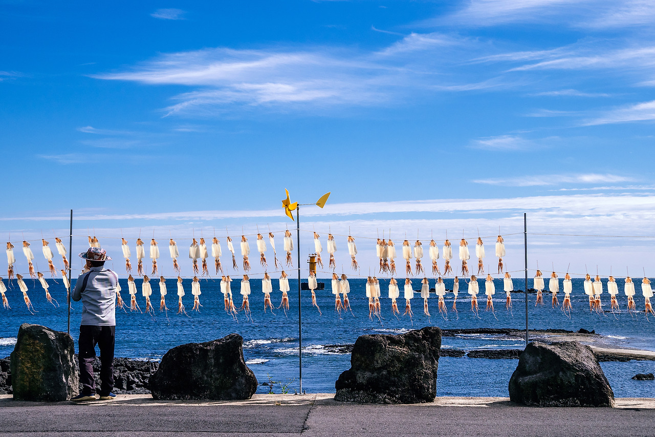 제주도에서 사는 30일, 이런 여유도 있다. 가는 길에 멈춰 서서 하고 싶은 것 하기. 그게 바로 제주도 한 달 살기의 매력이라면 매력이다. 오징어를 바닷바람에 말리는 모습에 그만 차를 세우고 말았다. 반건조 오징어란다. 아내가 매우 좋아하는 안주거리가 바로 눈 앞에 등장한 것이다. 그냥 스쳐 지나갈 수 있을까?