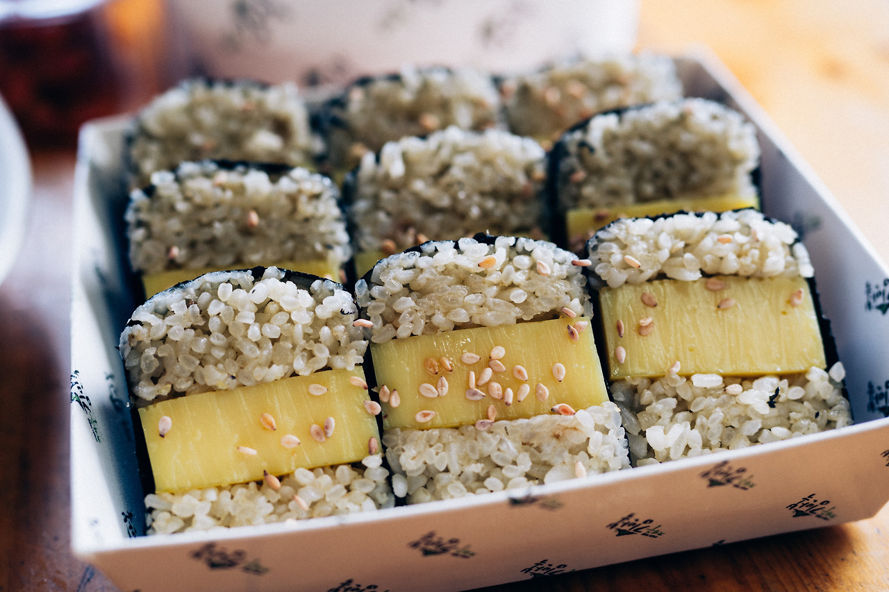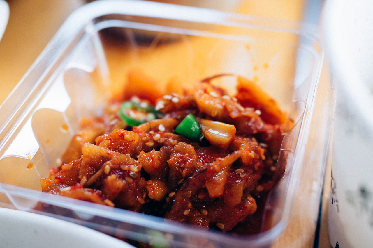 우리가 제주도로 향하기 전부터 방영했던 '효리네 민박' 덕분에 알게 된 김밥 집이라고 할까? 생긴 모양과 수많은 후기 때문에 제주도에 가면 한 번쯤 꼭 먹어보고 싶었다. 사실 지난 7월, 제주도에 방문했을 때 이미 한차례 공략하려 했으나, 끝없는 줄에 그만 포기하고 공항으로 향했다. 인기가 많은 곳이기에 그만큼 시간을 투자해야만 하는 장소였는데, 우리 부부가 또다시 도전했을 때는 줄이 하나도 없었다. 매력적인 계란과 전복 내장으로 만든 밥을 활용해서 김밥을 만들었고, 함께 곁들여 먹는 오징어무침이 굉장했다. 자꾸 오징어무침에 손이 간다. 이색적인 김밥을 원한다면 줄을 서 보는 것도 괜찮을 것 같다는 생각이다.