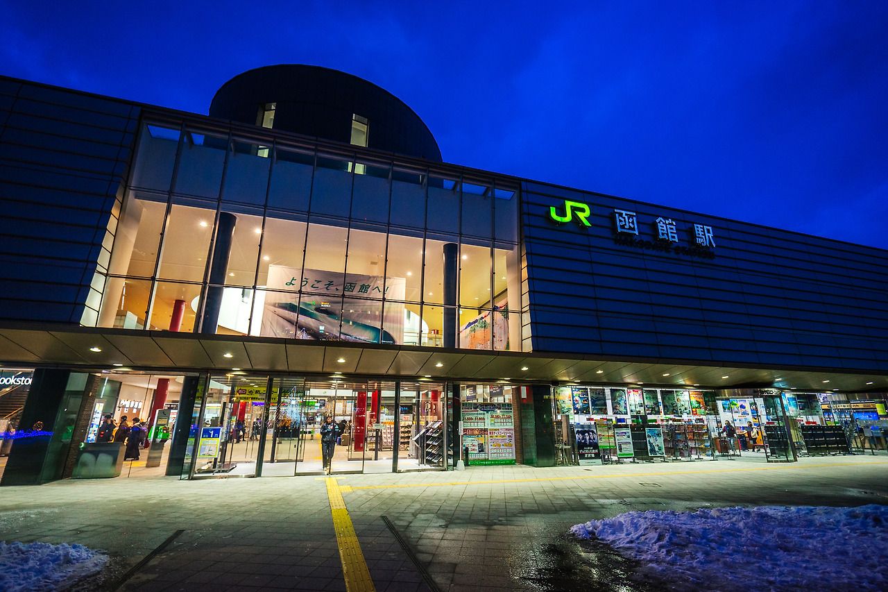 그렇게 몇 시간이 흘렀을까? 열차 안에서 내리는 눈 꽃을 구경하고, 홋카이도의 풍경을 감상하기도 하면서, 또 잠에 드니 적어도 알아들을 수 있는 하코다테 역에 도착한다는 방송을 듣게 됐다. 그 느낌은 마치 대전에서 출발해서 부산에서 내리는 것처럼 홋카이도 내에서 최남단에 속하는 하코다테를 맞이하는 순간은 그리 낯설지가 않았다. 내가 도착했을 때는 이미 밤으로 향하고 있었다. 홋카이도는 오후 4시만 돼도 컴컴한 밤 세상으로 변신해버린다.