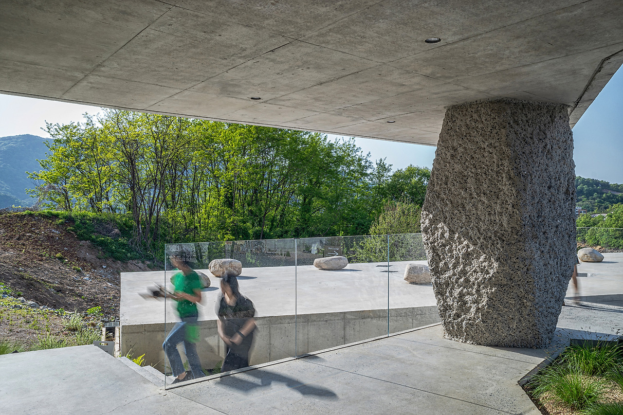 콘크리트는 인간이 만든 가장 흥미롭고 대중적인 소재로 우리 일상 주변에서 쉽게 마주할 수 있다. 그래서 그럴까? 일상에서는 그저 쉽게 지나칠 수 있고, 그 장면을 잊고 살아갈 수 있지만 노출 콘크리트의 건축적 매력을 인지한 뒤에는 이 돌과 흙 그리고 자갈과 철근이 가진 오묘함을 흐느끼기 시작한다. 네임리스건축은 자연의 땅 위에서 실현 가능한 콘크리트 건축물의 입면을 설계하는데 깊은 조예가 있다. 추측건대, 땅과 하늘 사이에 건축물을 놓아 그 중간 역할을 할 수 있도록 설계하는 듯하다. 마치 조물주가 슬쩍 물건 하나를 가져다 놓은 느낌이랄까?