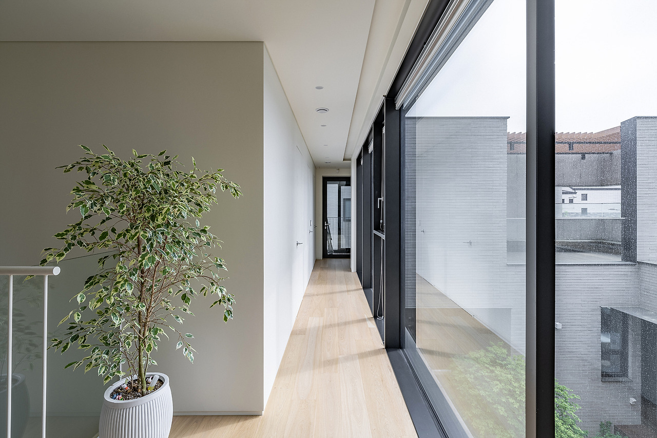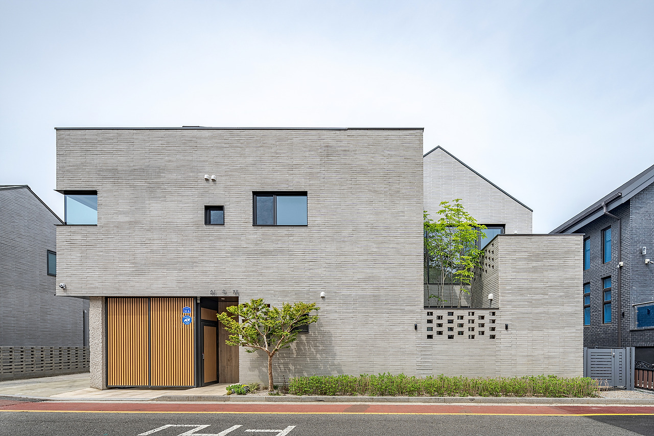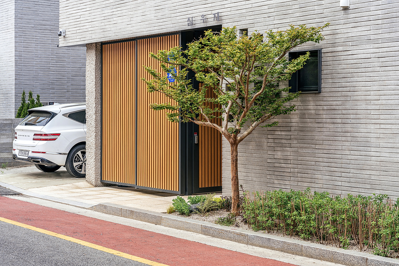 지난해에 준공된 이 집은 여러 가지 이유로 준공 사진 촬영 시기가 미뤄져 올해 2024년 장마 시기를 앞두고 사진을 촬영하게 됐다. 사연이야 깊지만 더 이상 미룰 수 없는 상황 때문에 흐린 날씨에 카메라 장비를 꺼내들어 건축주에게 방문했던 기억이 지금도 생생하게 난다. 그 이유는 지난해에 촬영이 늦어진 이유에 날씨 영향이 포함됐기 때문이다. 이 일을 그렇게 오래 하진 않았지만 날씨의 영향과 그날의 상태가 결과물의 대부분을 결정짓는다는 것에 쉽지 않은 일임을 일깨운다. 오늘의 빛은 따스하거나 맑진 않지만 흐린 빛 특유의 부드러움과 건축물과 하늘이 하나가 될 수 있는 장면이 종일 지속되기 때문에 상황을 피할 이유 또한 없다.