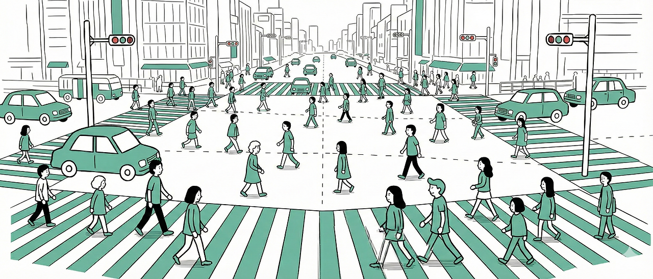 가만히 눈을 감고 생각해 봤다. 지금 내 모습이 어떤지. 시부야 스크램블 같이 복잡한 도로를 많은 사람들과 무단횡단하는 모습이 떠올랐다. 다들 이쪽에서 저쪽으로 건너야 한다며 다 같이 무단횡단을 한다. 나도 얼레벌레 그 행렬에 달려든다. 차들은 사방에서 달려든다. 그냥 작은 사고만 나라, 부디 트럭에 치이지는 말자, 나는 안 치이겠지?라고 생각하며 이쪽저쪽으로 무단횡단을 한다.