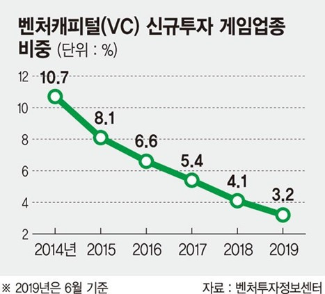이런 흐름을 반영하듯 게임 산업에 대한 투자 비중은 매년 감소하고 있다.
