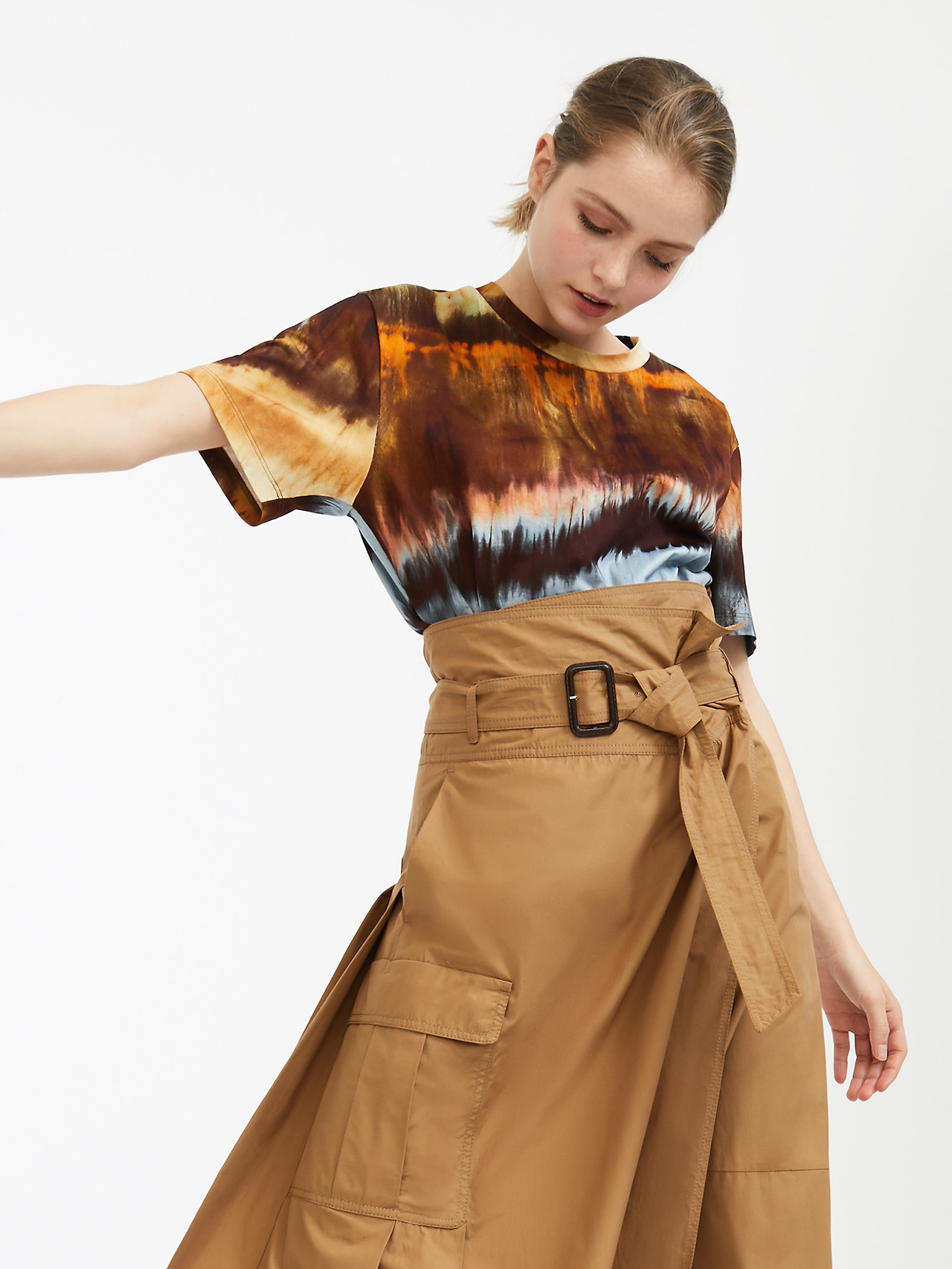 타이다이 디자인을 입을 땐 큼직한 크기를 추천한다. 몸에 딱 맞는 디자인에 색상이 퍼진 프린트는 뚱뚱해 보일 수 있어서다. 자기 신체보다 한 치수 큰 타이다이 디자인 티셔츠를 입고 몸에 딱 맞는 짧은 레깅스를 입거나, 반대로 품이 넉넉한 타이다이 팬츠에 검정 티셔츠를 입어도 멋스럽다. 헐렁한 원피스도 세련됐다.