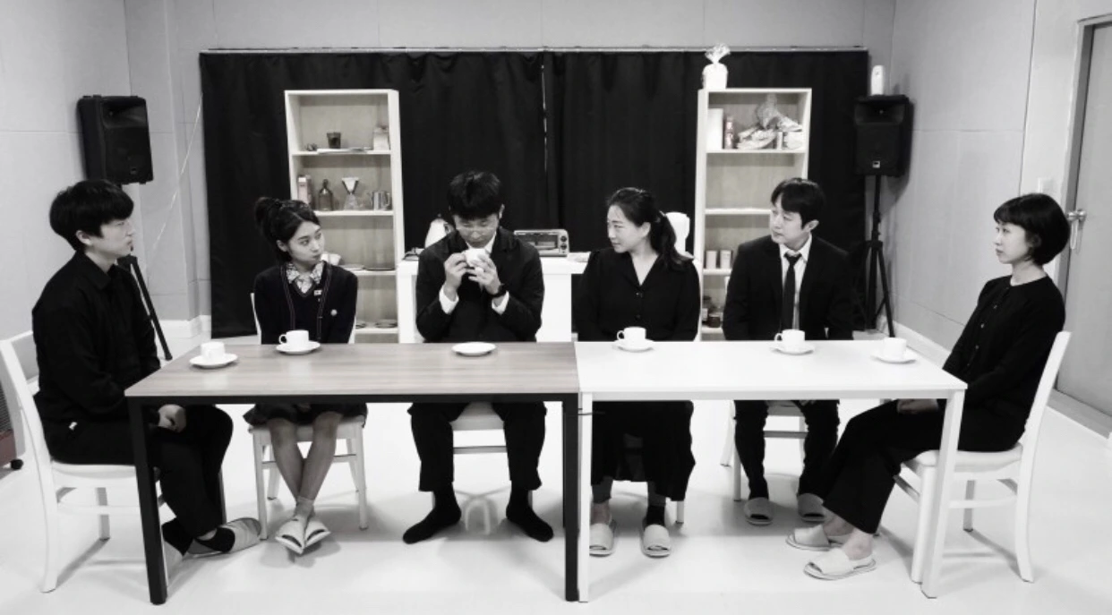 총 6명의 가족 구성원이 등장한다. 그리고 이들은 원래 가족이 아니었다. 하지만 이들에게는 공통점이 있다. 사랑하는 가족을 불의의 사고로 먼저 보냈다는 것이다. 할아버지는 평생을 함께한 할머니를 잃었고, 부인은 남편과 아들을 먼저 보냈다. 젊은 남자는 결혼을 약속한 약혼녀를 보내야만 했고, 남매는 사랑하는 부모님과 동생을 떠나 보내야 했다. 그들은 단체 여행 중 불의의 사고로 이들을 잃었다. 그리고 그 현장에서 살아남은 사람들만 가족이 되어 식탁에 둘러앉아 있게 됐다. 얼마나 기괴한 설정인가.
