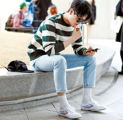 통이 넉넉한 청바지가 여성 청바지의 트렌드라면 남성 청바지는 반대로 폭이 좁아지고 길이가 짧아졌다. 올봄엔 신체 사이즈에 딱 맞는 슬림핏이나 일자 형태인 스트레이트 핏에 발목이 살짝 보이는 7, 9부 청바지가 유행이다. 발목이 보이는 디자인인 만큼 신발과 양말 선택이 중요하다. 신발은 발목 복사뼈를 덮지 않는 운동화나 슬립온이 좋다. 양말은 시선을 뺏지 않도록 무늬 없는 것이 어울린다.