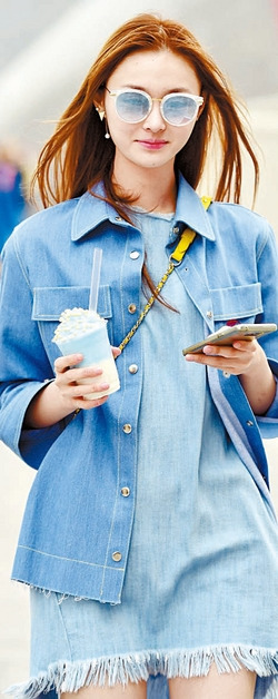 상·하의를 모두 데님으로 맞춰 입는 패션인 ‘청청 패션’을 연출할 수도 있다. 진한 청색의 데님 원피스 위엔 이보다 연한 청색의 셔츠를 입으면 멋스럽다. 이때 신발은 단화·하이힐 등 종류에 따라 여성스럽거나 캐주얼한 느낌 등 여러 가지 분위기를 낼 수 있다. 윤인영 스타일리스트는 “상·하의를 데님으로 입는 청청패션이 부담스럽다면 회색이나 흰색 슬립온을 신어 균형감을 살리면 좋다”고 조언했다.