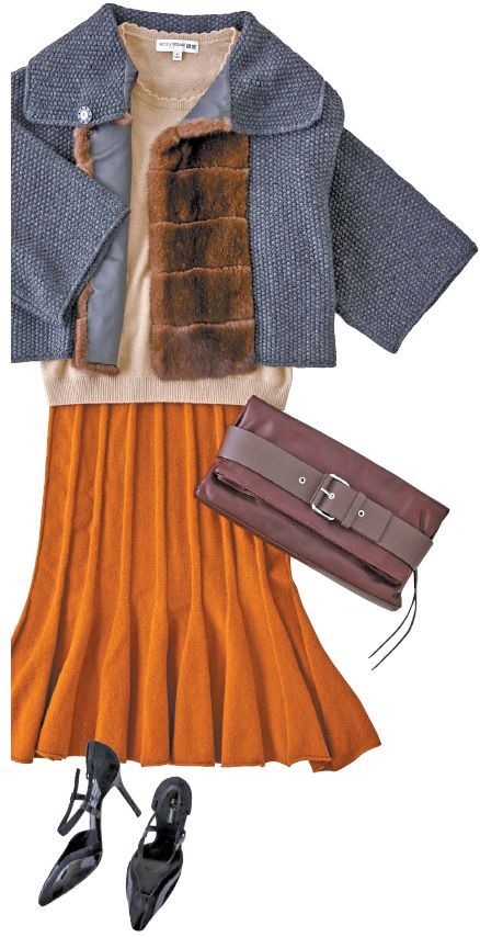 치마는 소재 선택이 중요하다. 상의가 따뜻한 분위기를 나타내는 캐시미어여서 시원하고 가벼워 보이는 면이나 얇은 천 소재는 피하는 게 좋다. 양모섬유사로 만들어진 모직 치마나 울 소재 치마가 어울린다. 캐시미어 니트를 바지와 함께 입는다면 모직 소재의 품이 넉넉한 슬랙스를 선택할 수 있다. 이때 상·하의가 모두 두꺼운 소재로 몸이 뚱뚱해 보일 수 있다. 낮은 굽의 신발보다 5~6㎝의 미드 힐 구두를 신으면 날씬해 보이고 세련된 멋을 낼 수 있다.