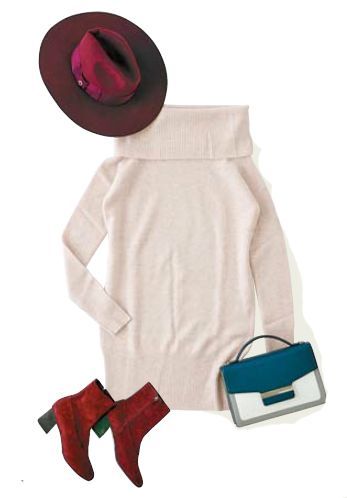 깔끔하면서도 사랑스러운 분위기를 나타내고 싶다면 헐렁한 크기의 캐시미어 원피스를 선택할 수 있다. 연한 핑크 컬러의 목이 긴 터틀넥 원피스 안에 하얀 셔츠를 껴입으면 청순한 여성미를 나타낼 수 있다. 안에 입은 셔츠는 목과 소매 부분에서 살짝 보이도록 꺼내 입는 것이 멋스럽다. 몸에 딱 붙는 스타일의 캐시미어 원피스는 세련되게 보인다.