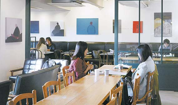 갤러리 카페는 신진 작가에게는 자신의 작품을 처음으로 알리고 작품도 판매하는 새로운 형태의 무대가 되고 있다. 서울 이화동에 있는 ‘그림가게, 미나리하우스’에는 40여 명의 신인 작가 작품을 한눈에 볼 수 있는 포트폴리오가 마련돼 있다. 6개월에 한 번씩 신진작가 중 한 명을 선정해 카페 2층 공간을 개인 작업공간으로 제공한다. 이곳을 운영하는 정지연 아트 디렉터는 “신진 작가 포트폴리오로 1000여 점이 넘는 작품을 볼 수 있다. 그림을 구입해 본 적 없는 사람도 이곳에서 여러 작품을 보고 자신의 취향에 맞는 작가와 작품을 골라 미술품 수집가의 세계로 입문하기도 한다”고 설명했다.