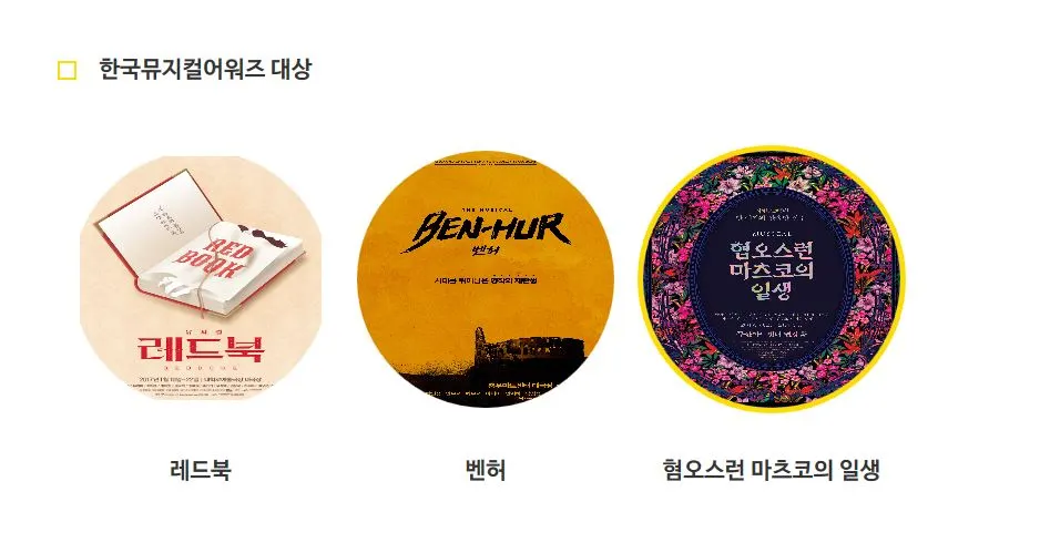 하지만 이 같은 흐름이 점차 바뀌고 있다. 지난해부터 개최된 한국뮤지컬어워즈(문화체육관광부∙한국문화예술위원회 주최, 한국뮤지컬협회 주관)의 수상 목록만 봐도 그 변화를 알 수 있다. 올해 열린 제 2회 한국뮤지컬어워즈 여자 주연상 후보로 쟁쟁한 수입 뮤지컬을 연기한 여배우(수상 후보: 옥주현(메디슨 카운티의 다리), 유리아(레드북), 윤공주(아리랑), 차지연(마타하리))들이 많았지만 수상자는 창작 뮤지컬 ‘어쩌면 해피앤딩’의 배우 전미도였다. 한국뮤지컬어워즈 대상 후보작으로도 처음으로 창작 뮤지컬이 올랐다. 최종 수상은 ‘벤허’가 했지만 수상 후보로 ‘혐오스런 마츠코의 일생’과 함께 창작 뮤지컬 ‘레드북’이 당당하게 이름을 함께 했다. 지난해 한국뮤지컬어워즈 대상 후보는 ‘노트르담드 파리’ ‘마타하리’ ‘스위니토드’ ‘위키드’ ‘킹키부츠’로, 모두 수입 뮤지컬이었던 것과 비교되는 부분이다.