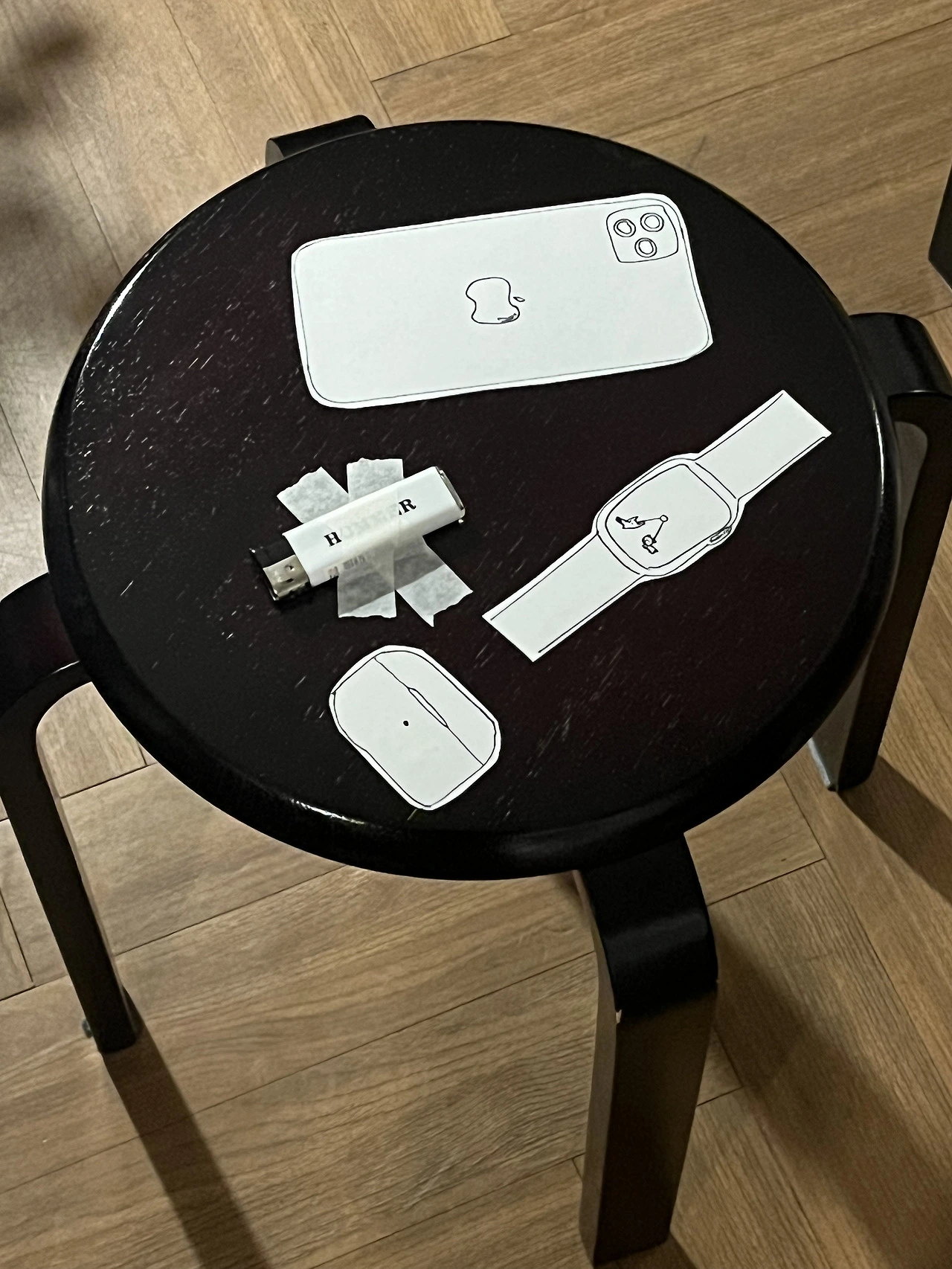 가. 스툴 위 부착된 그림과 걸맞은 소지품을 올려놓는다.