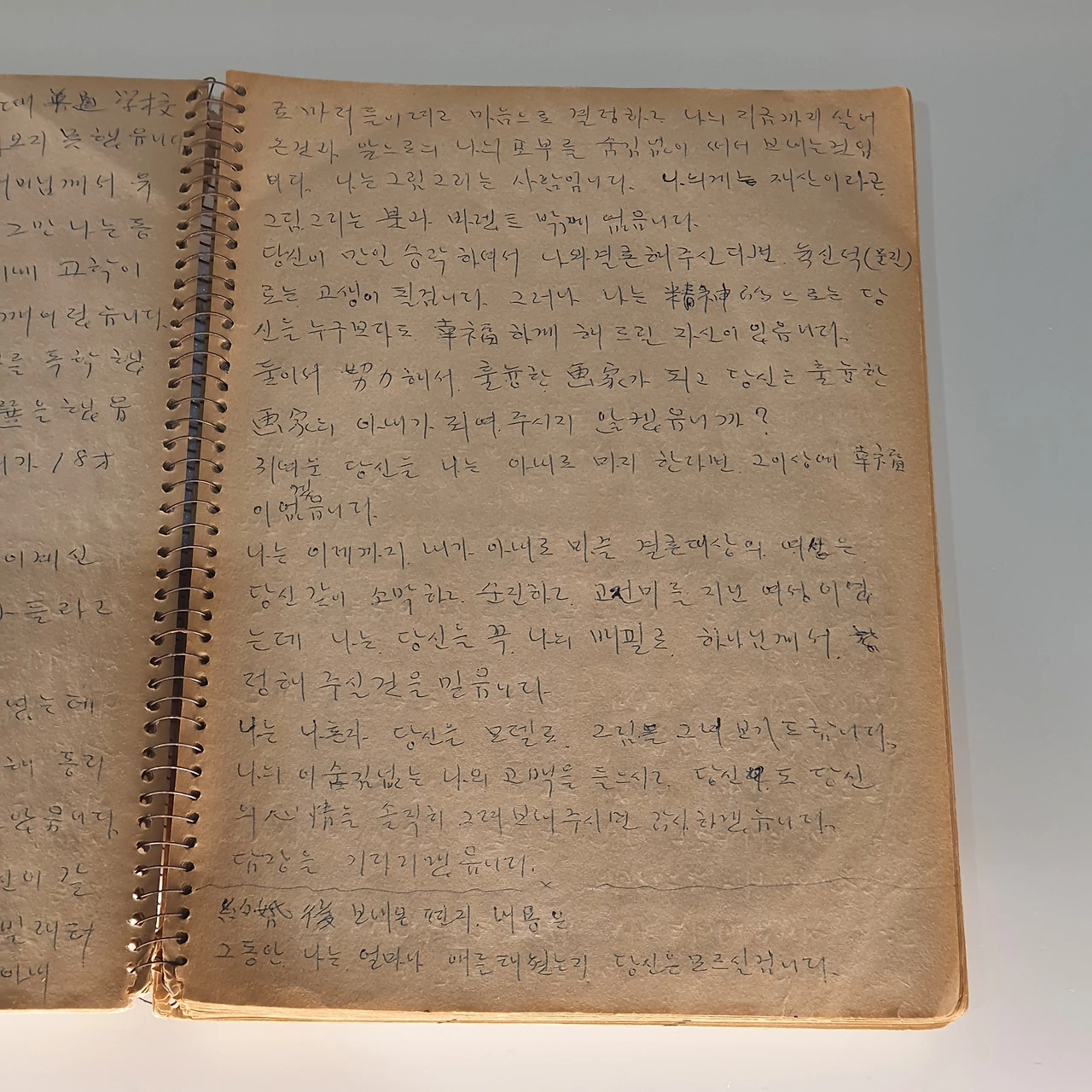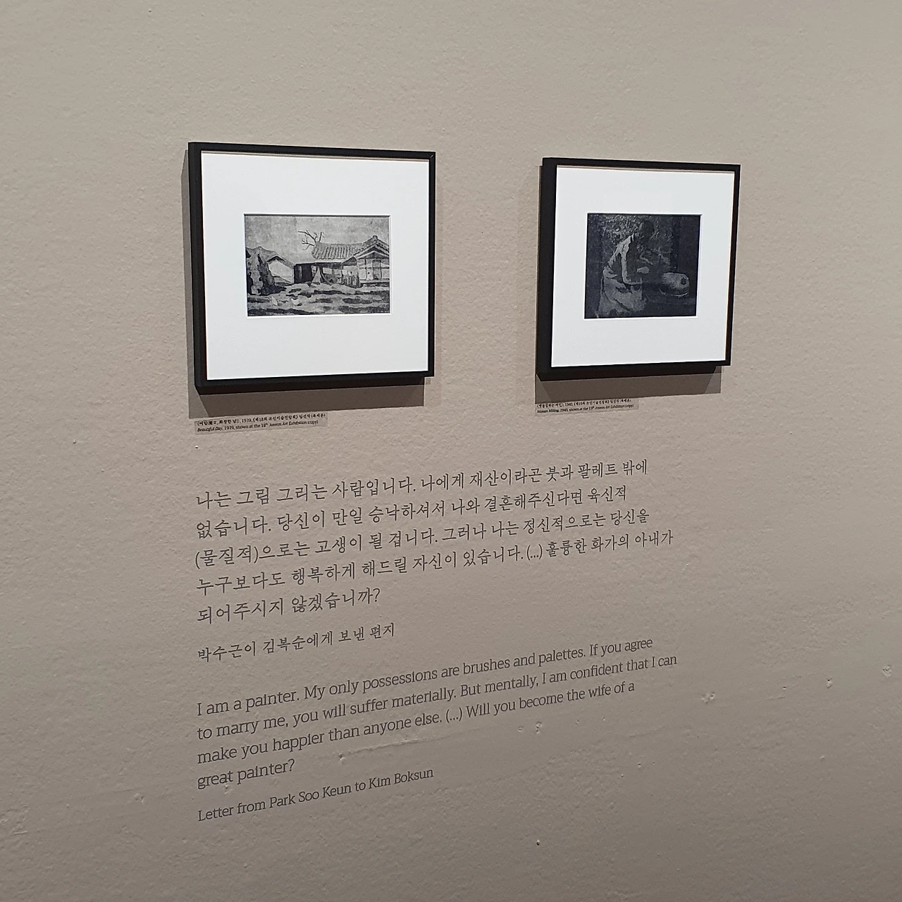 지금보다 가부장적 문화가 훨씬 많이 남아 있던 1950~60년대의 시기에 이웃의 여인들을 주제로 그림을 그린 이유가 무엇일까, 무엇이 그를 가부장적이고 남성중심적인 관점에서 해방시켰을까 궁금증이 있었는데, 전시 초입에 적힌 문구를 보니, 어렸을 적 어머님께서 유방암으로 병원에 오래 계시다 돌아가셔서, 화백은 돌아가신 어머니를 대신해 동생들과 아버지를 돌보고 집안 살림을 맡아했다고 한다. 그런 경험과 가사노동, 돌봄에 대한 이해가 있었기에 화백은 주변의 여인들의 모습이 눈에 밟혀 차마 그리지 않을 수 없었겠다는 짐작이 들었다. 그렇기에 아내에 대한 고백을 담은 편지가 그렇게도 애틋했나 싶기도 하고.