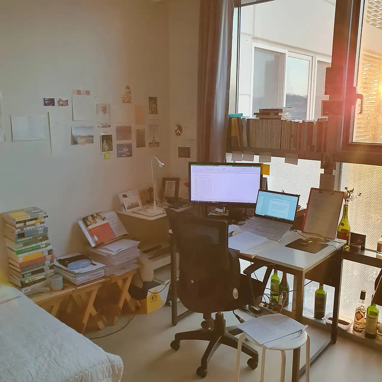 노을빛에 물들어 몽롱해진 책상 주변이 참 아름다워 보인다. 필터를 따로 쓰지 않아도, 노을빛만으로도 충분히 아름다운. 여기 앉아 있는 순간들이 새삼 이토록 아름다운 순간들이었구나, 싶은.