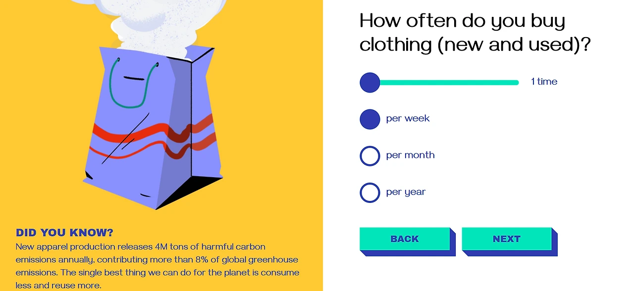 아래 사이트는 Thredup이라는 미국판 당X마켓인데, 소비습관과 세탁방법에 따른 온실가스 배출량을 계산해서 알려줍니다. 탄소발자국이라고 하죠!