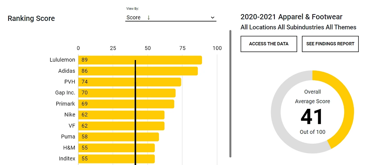 인권 실사, 근로자 참여 등 근로자 인권과 직결된 지표(worker-centric indicator)에서 0점을 받은 기업 49%